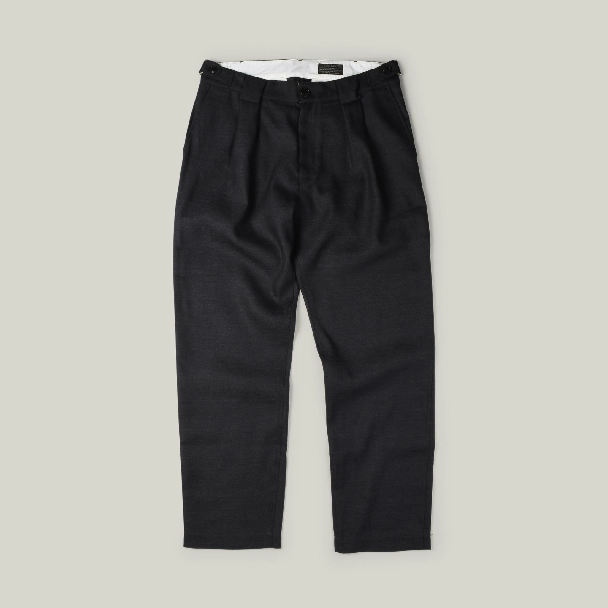 These exceptional trousers return again in the same lovely hemp/wool mix. Using thermo-regulatory hemp and fine ‘cool wool’, these can be worn nearly all year round and should be. The fit is full in the thigh with a nice taper, the details that set these apart are the large reversed pleats on the front and matching large belt loops, slide button side cinches and natural cotton waistband lining. Side and back pockets also feature, these are chic yet robust. Pair with the matching Anders jacket for an excellent suit.