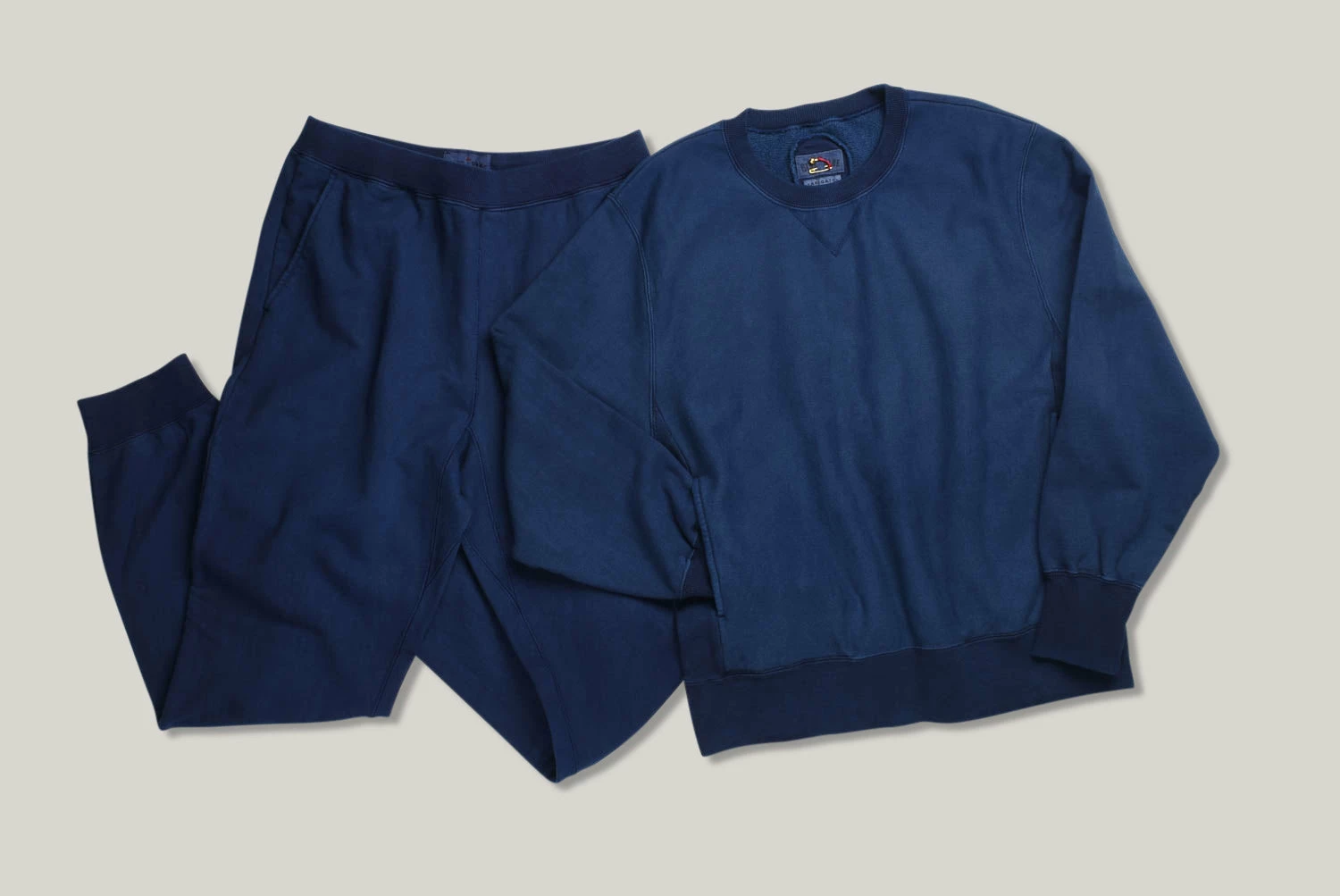 For the ultimate in indigo ath-leisure or dressing as a smurf, whichever your preference, these soft beauties are made with hand-dyed indigo, giving a stunning, soft blue hue that denotes more variation thanks to the dyeing process. Details include two side pockets, ribbed reverse weave side seam and ribbed cuff and collars. Pair with the matching pants for the perfect flight suit.
