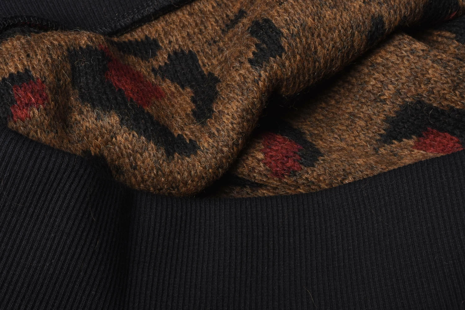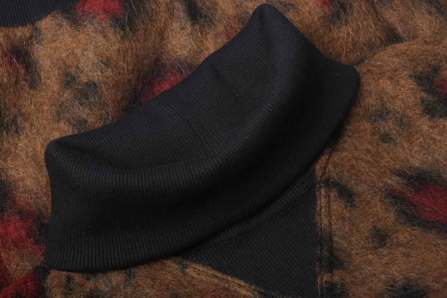 The softball jersey returns and this iteration retain the playfulness of the one we had previously but looks more smart and chic in this cashmere blend animal print knit. With black contrasting cuffs, bottom hem and turtle neck, it retains some of its sportswear aesthetic, yet is transformed into something rather special.