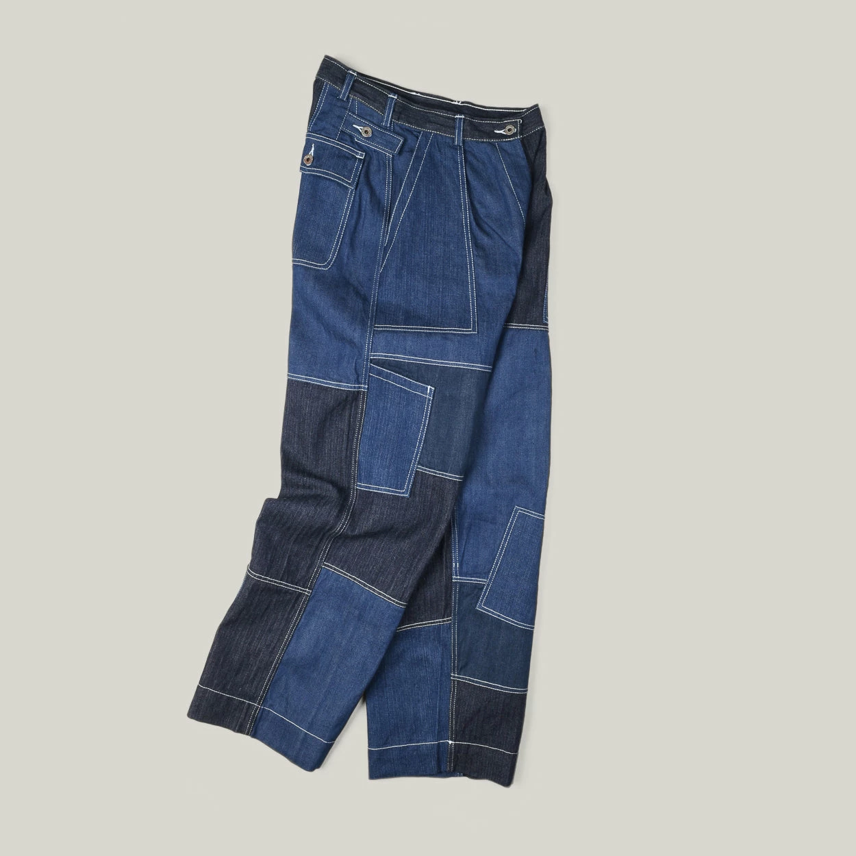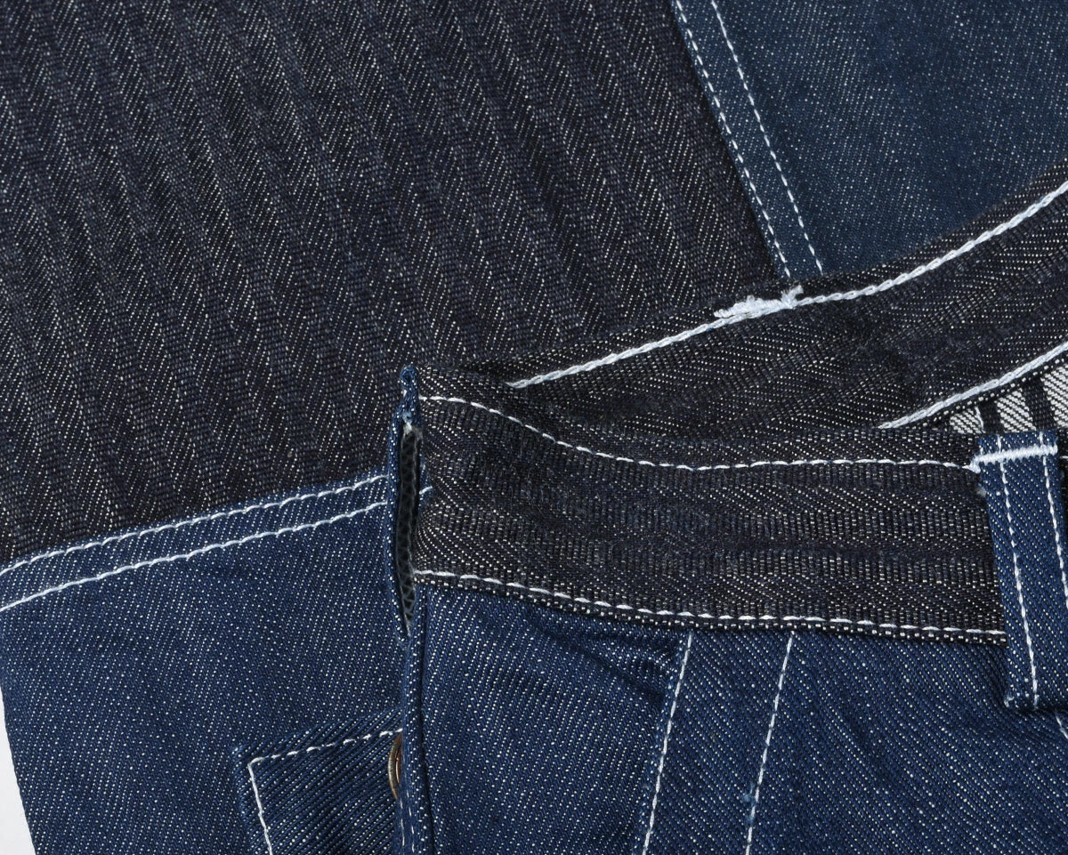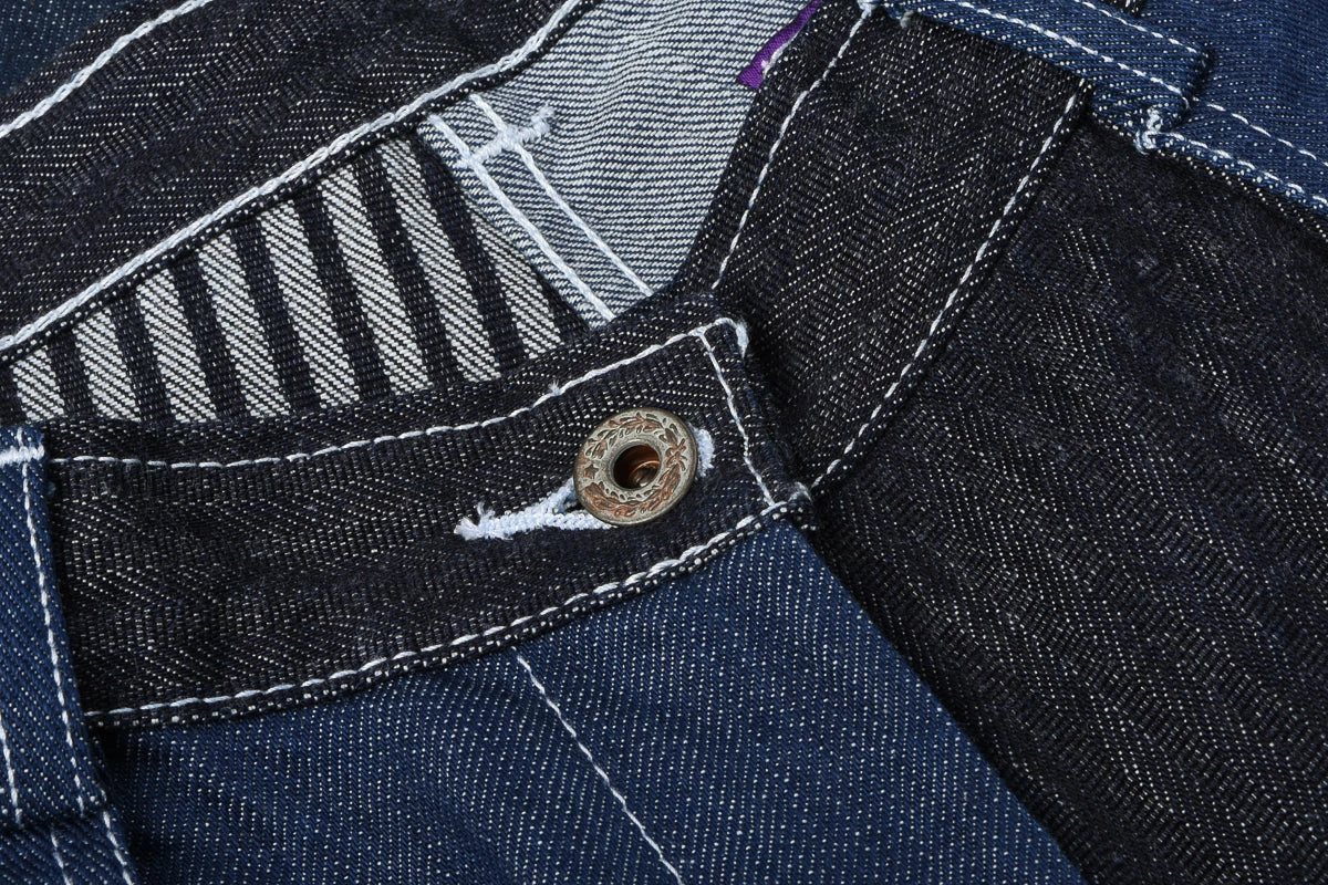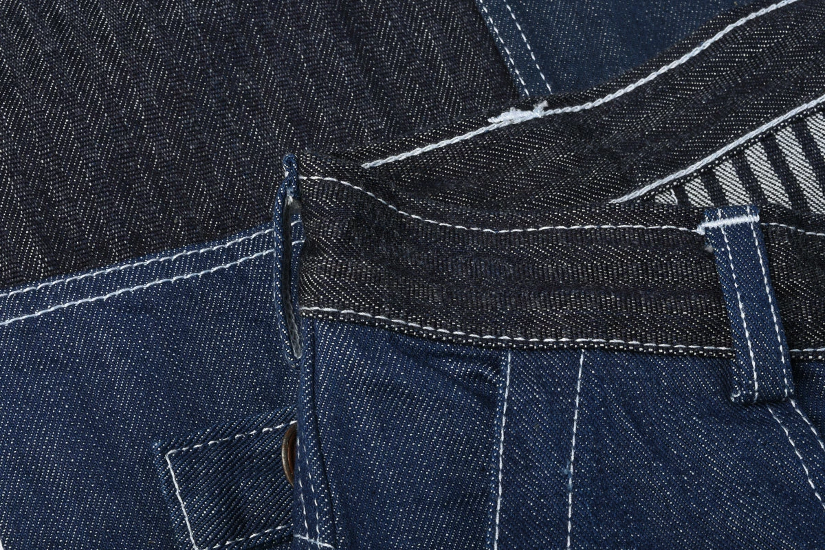 These pants were made in Nama Denim’s workshop in Bangkok, Thailand, by specialist Taral Pukklang from start to finish. From cutting to sewing on their collection of vintage workwear machines, Ms Pukklang has made art from these end-of-life fabrics.