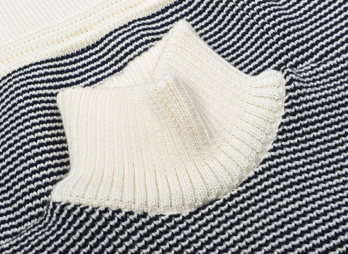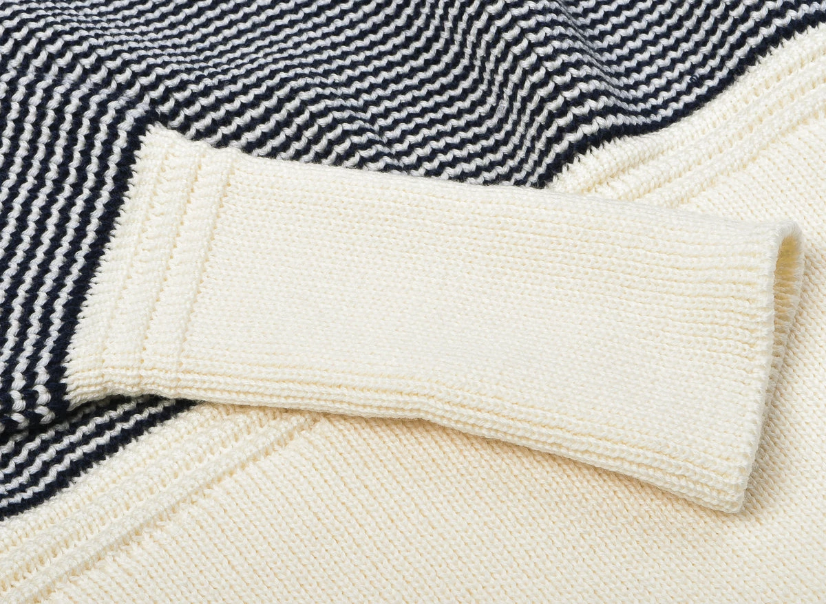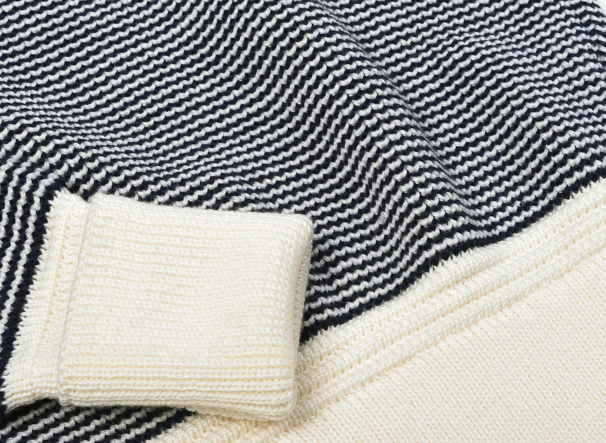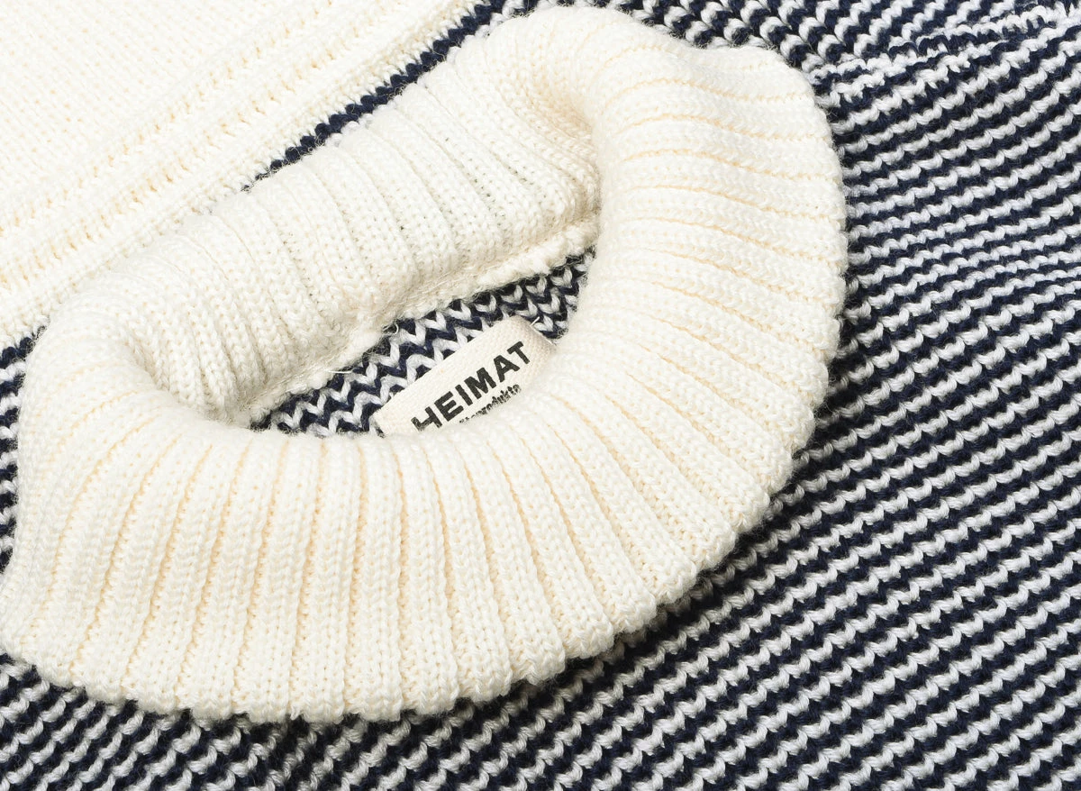 A brand new collection for Heimat which we are happy to debut, their classic crew neck with a few alterations; mainly it is shorter, more fitted and with a thicker band, much like a 1940’s vintage piece of knitwear. This one is produced in a softer merino yarn, rather than the usual virgin wool.
