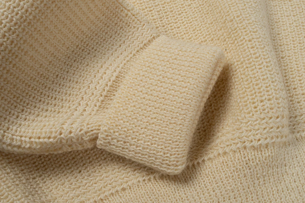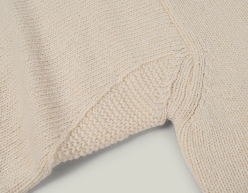 Classic nautical sweater from Heimat with double roll cuffs to adjust to different sleeve lengths. This thick gauge 100% virgin wool knit should be snug when you first wear it and expand and mould to your shape after a few wears. Details include hand-finished sleeves, collar and cuffs.