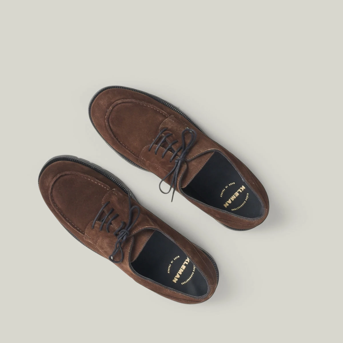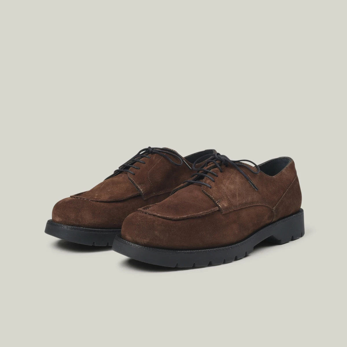 An everyday shoe built to last, using that front moccasin seam to straddle the look somewhere between smart and casual. This version comes in chocolate brown suede and black sole for contrast. The cemented sole unit is known for its anti-slip and anti-abrasion properties.