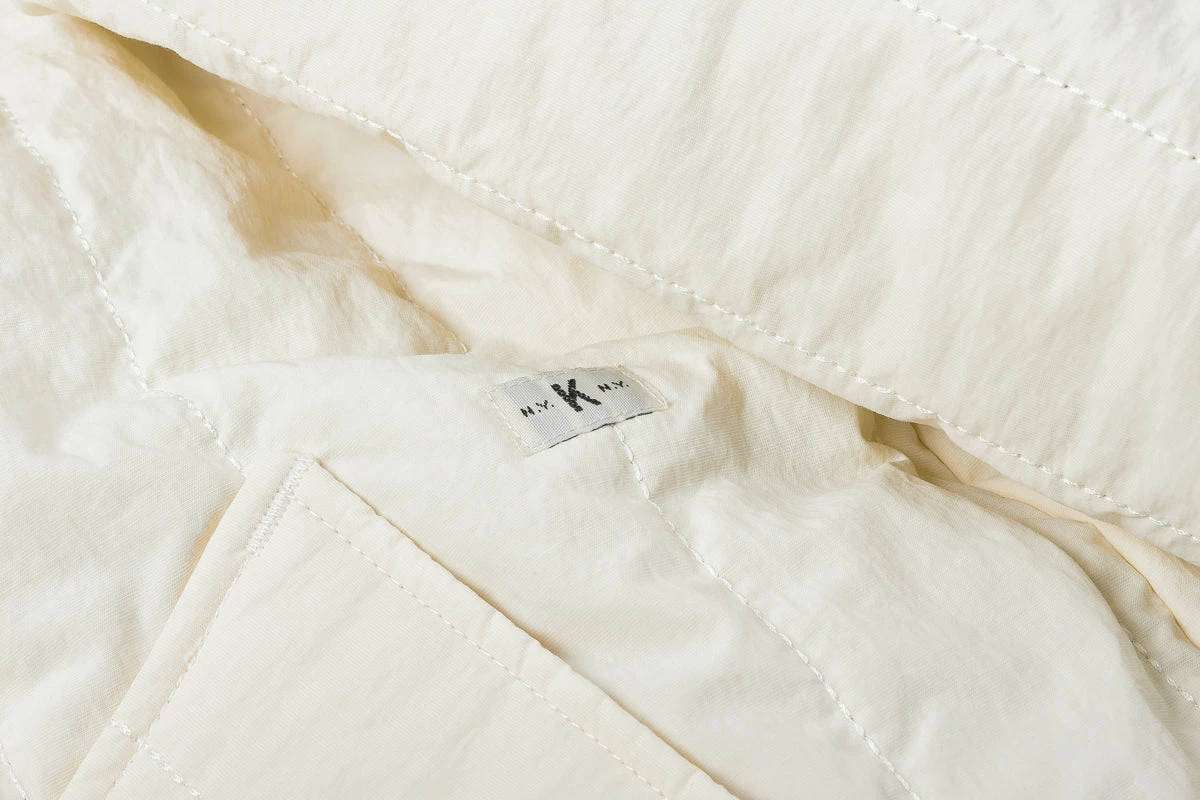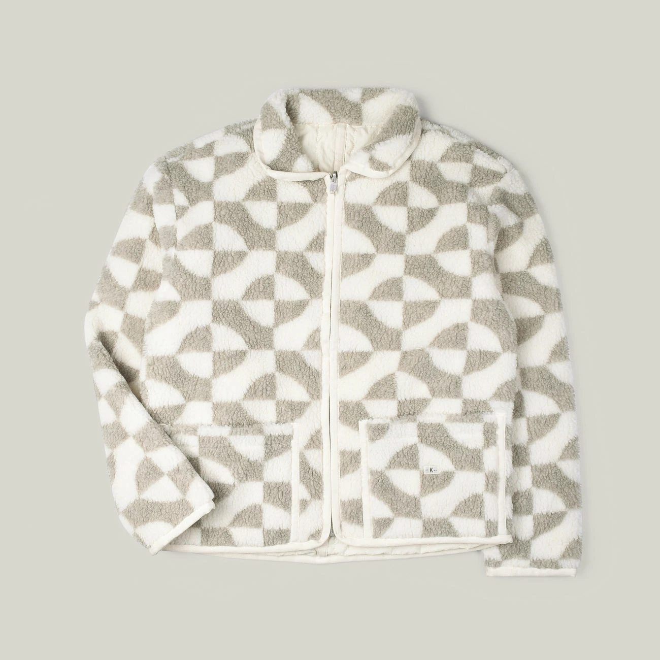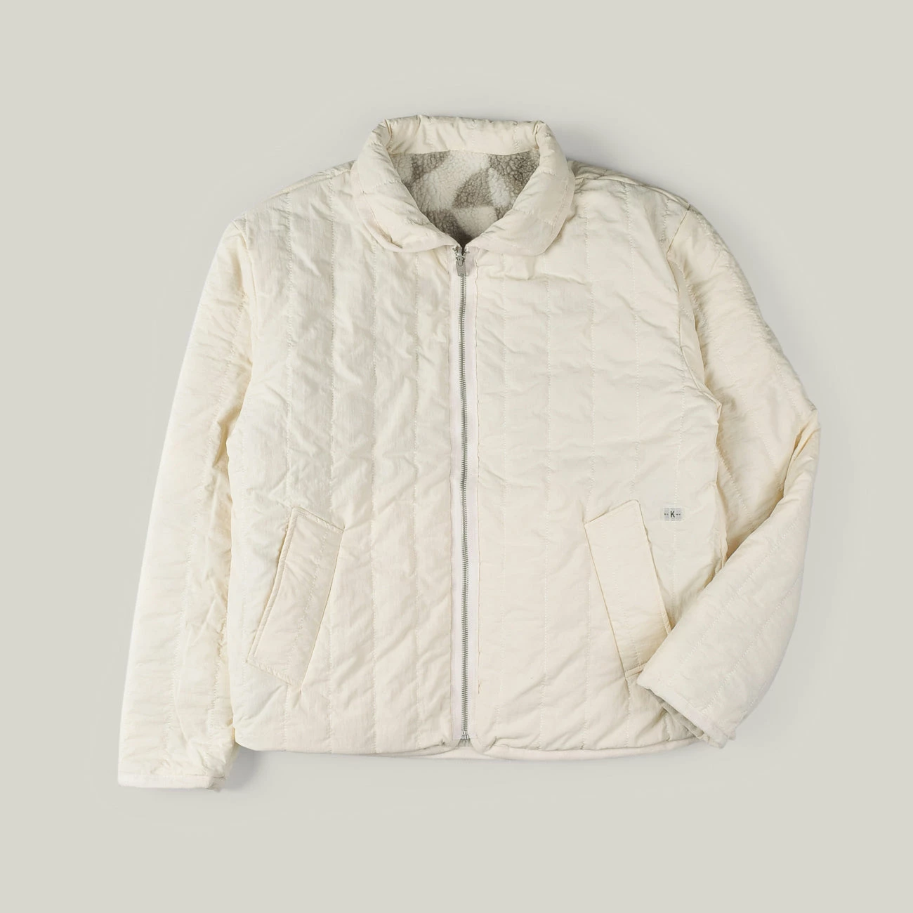 Nothing pricks our ears here at PPHH like a reversible garment, especially one that offers warmth and proof against the weather. One side is a printed polyester fleece with the other side being a quilted water repellent cotton and poly blend from Italian mill Olmetex. Details are sparse with such a reversible garment, an embroidered ‘K’ tab and hand warmers on either side also.