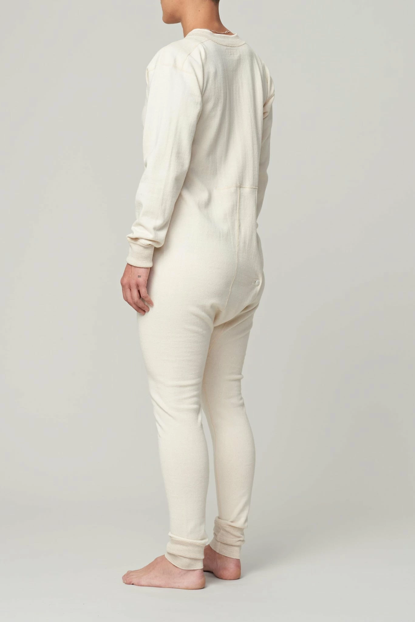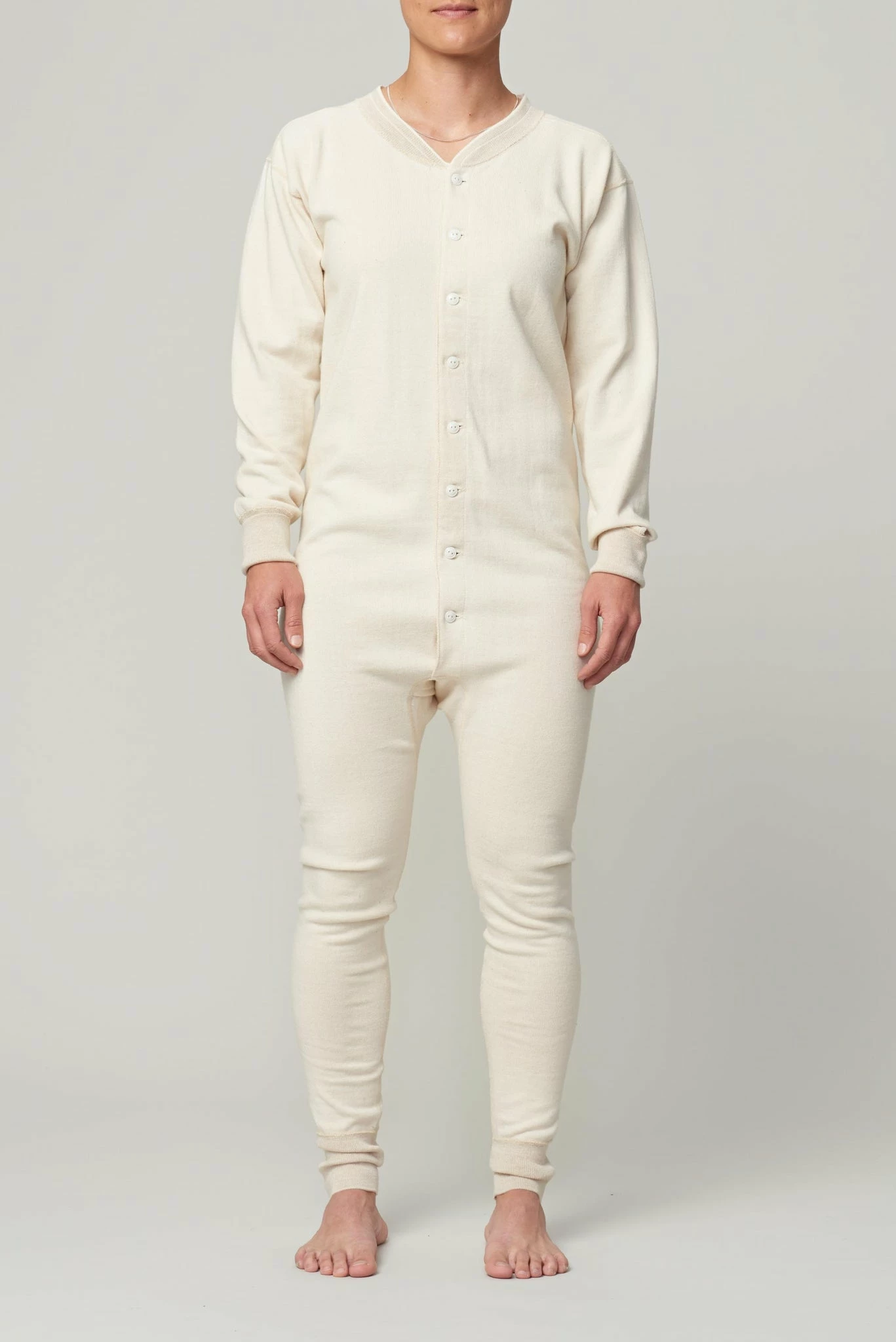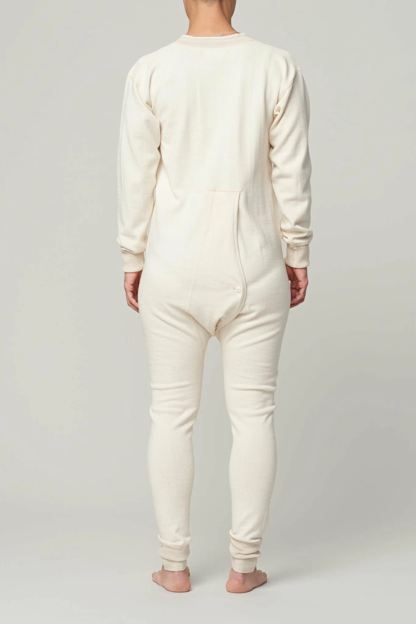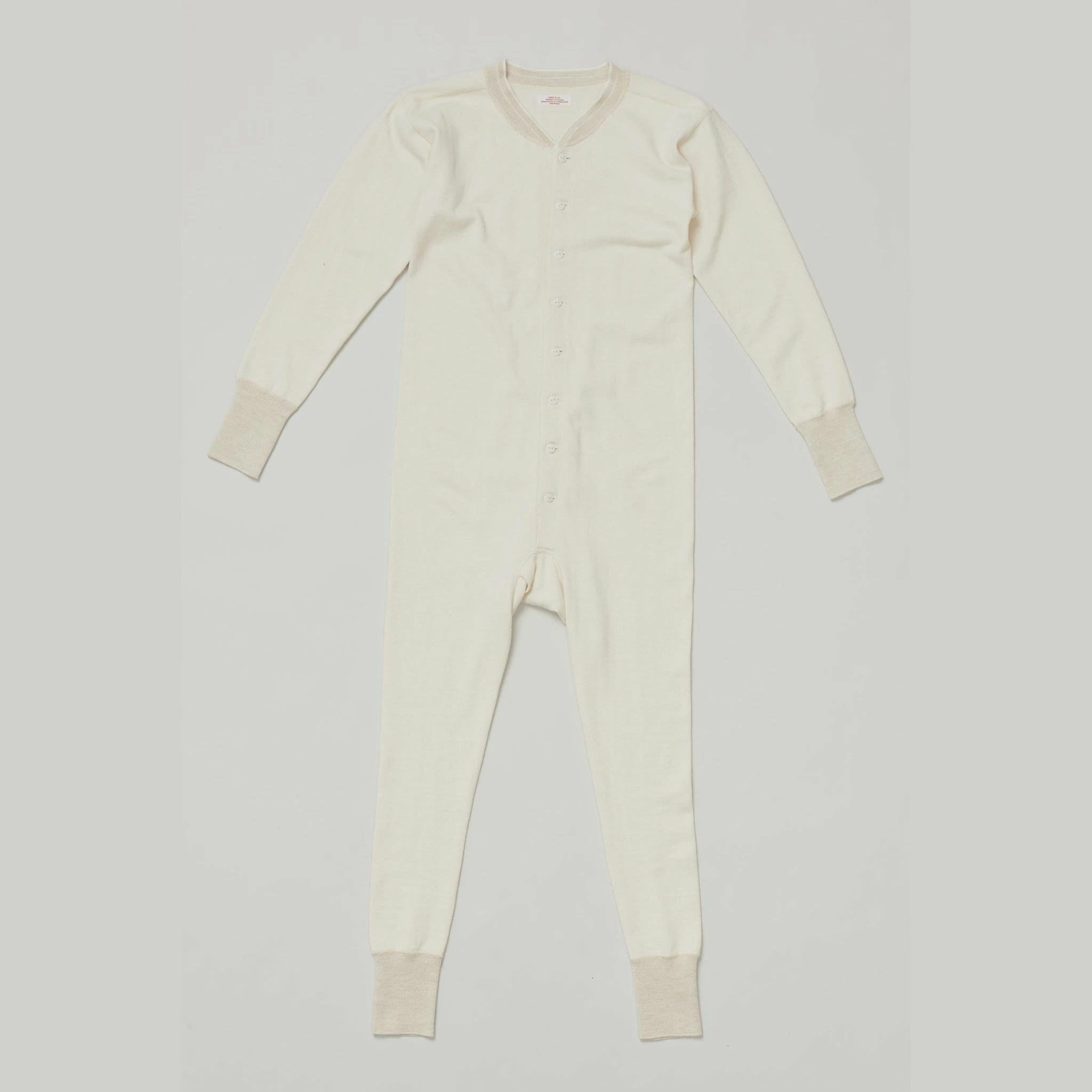 The All in one is a thermal style one piece, made from 100% wool. Features a button front detail and ribbed wrist and ankles.