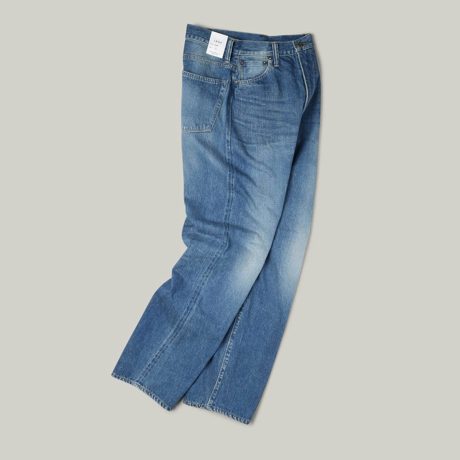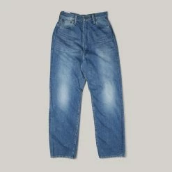 The Kay is a high waisted, wider leg pant made from 12oz original Selvedge denim, with pale pink line. Inspired by vintage 40s cuts, it has five pockets, the leg is nice and wide with a small waist. Using core spun yarn to keep the strength after stone-washing, the buttons are steel with partial brass plating, the jeans themselves constructed on a Union Special sewing machine.