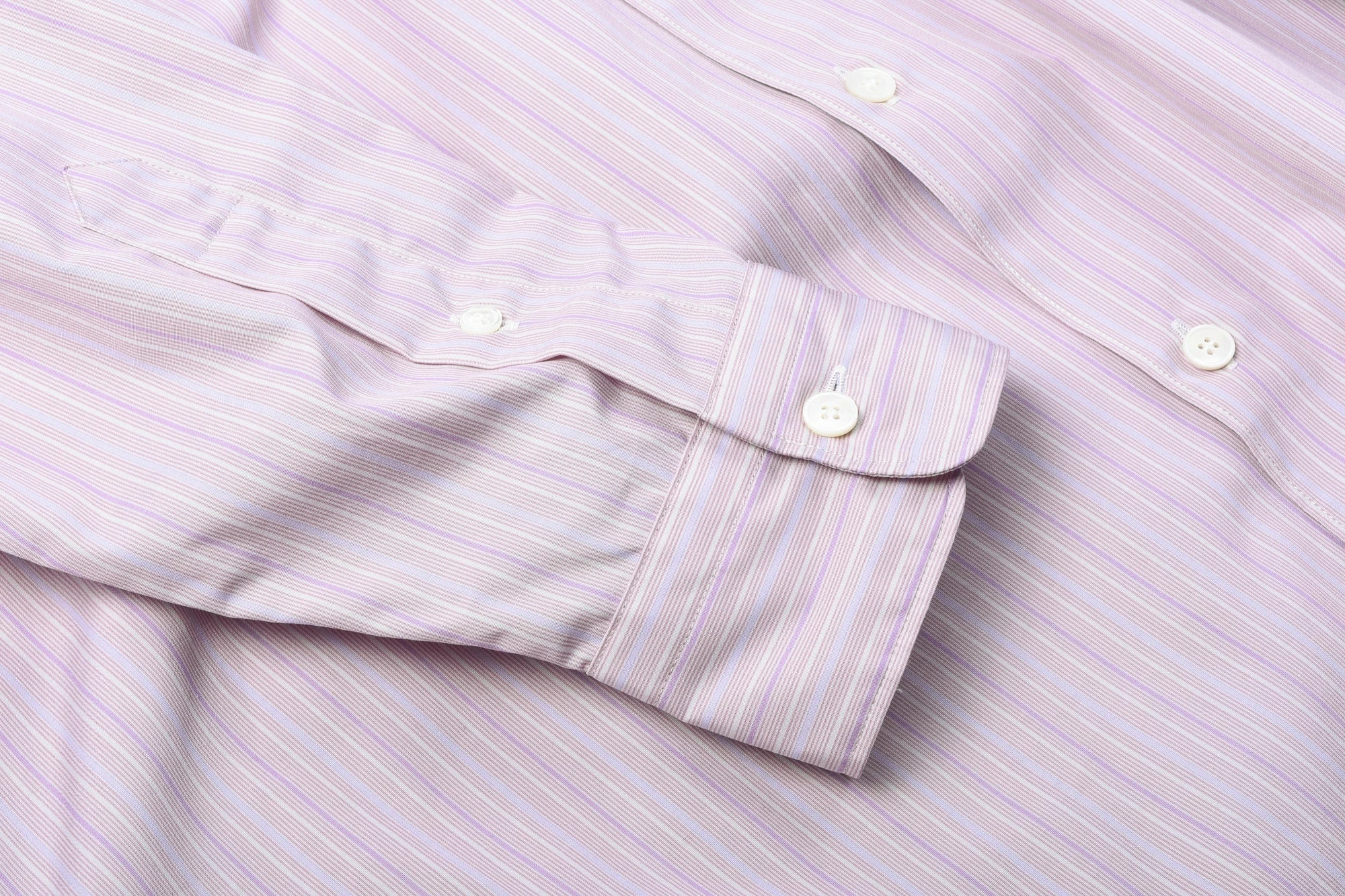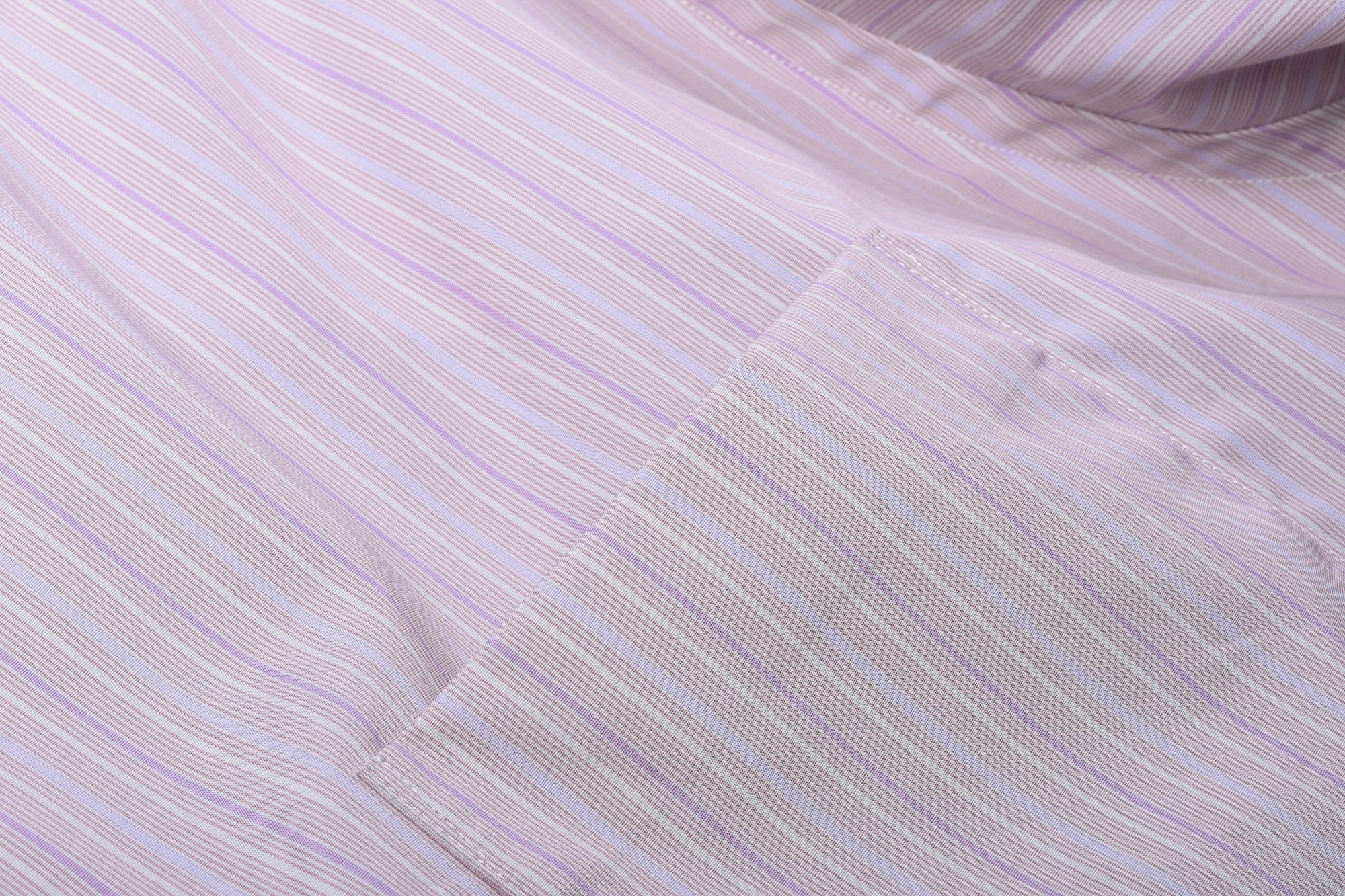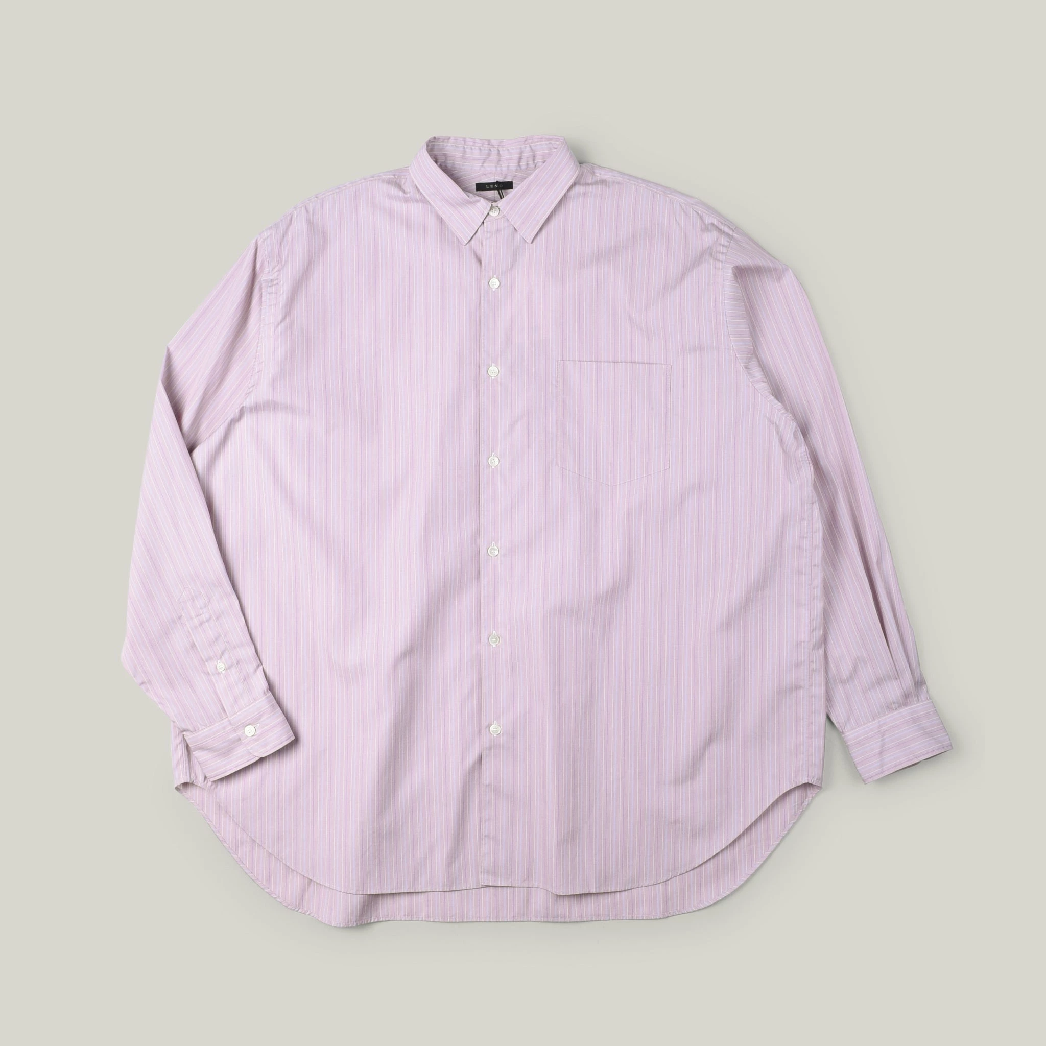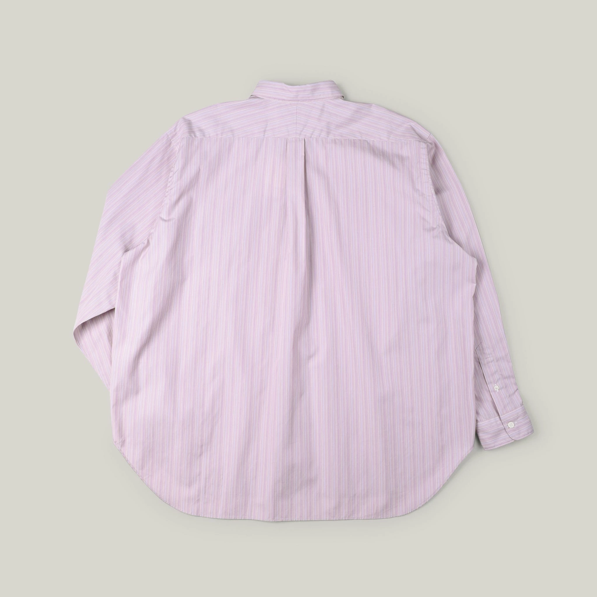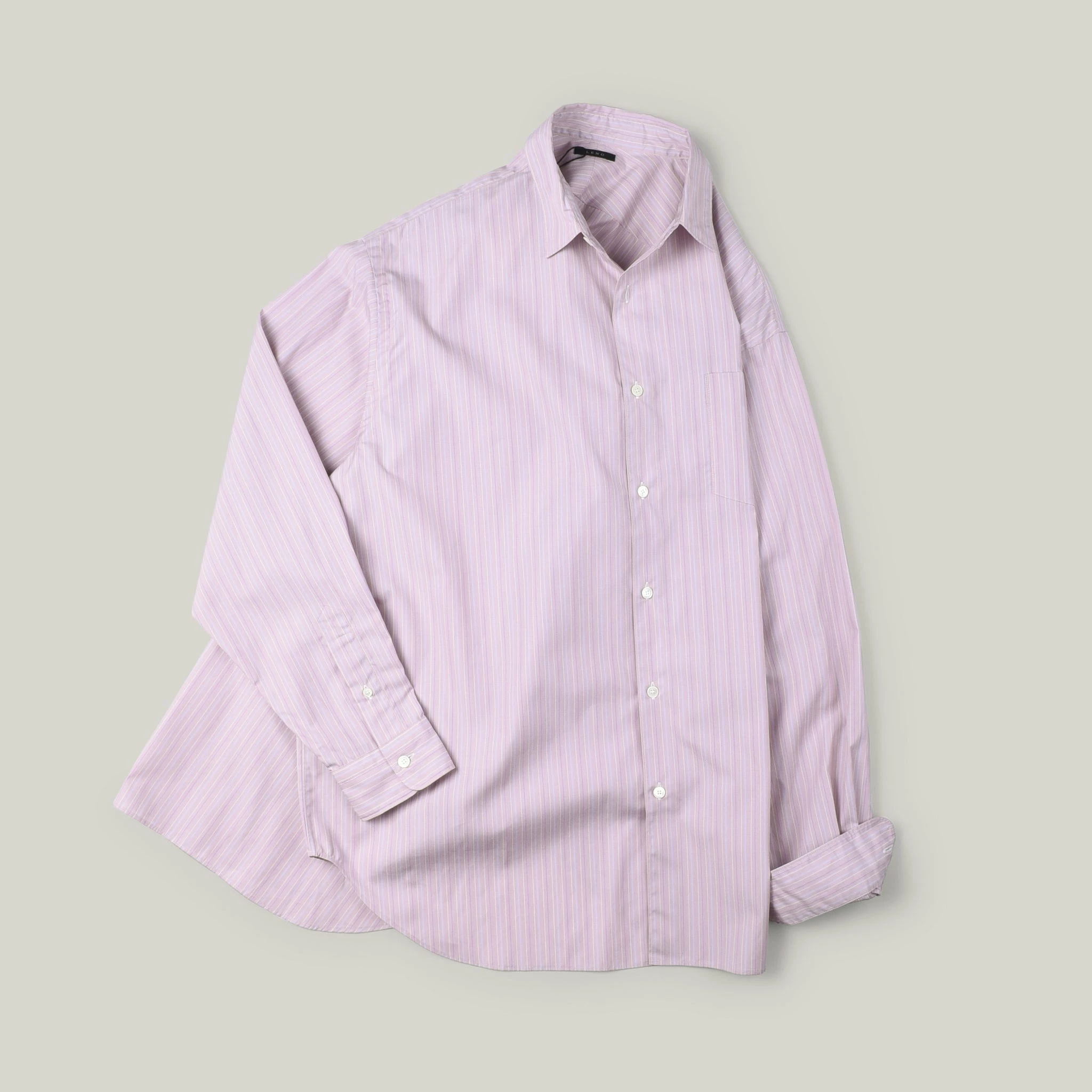 Soft cotton shirt in a formal shirting stripe, given a more contemporary feel due to the pink colour and oversized fit. Details include box pleat hem on back, single chest pocket and pearlescent buttons used throughout.