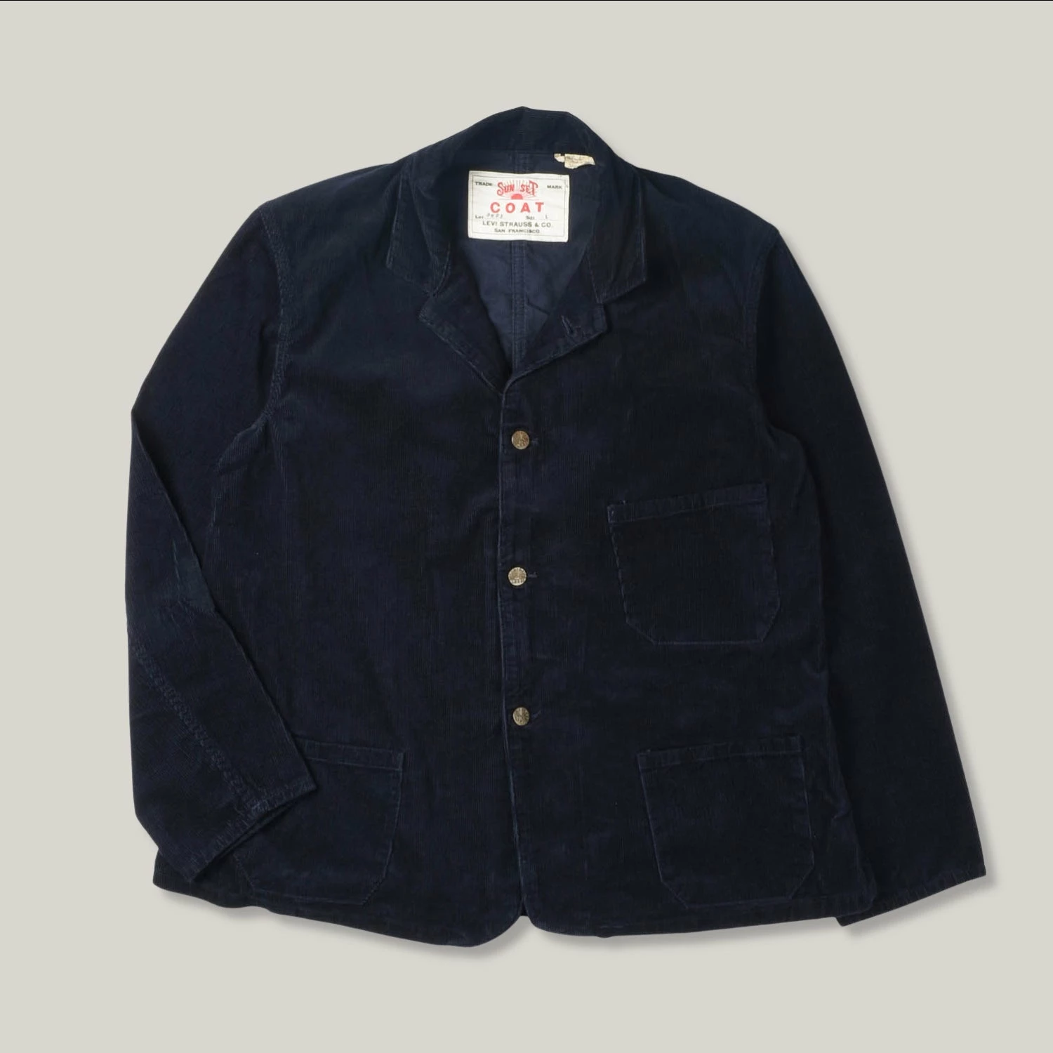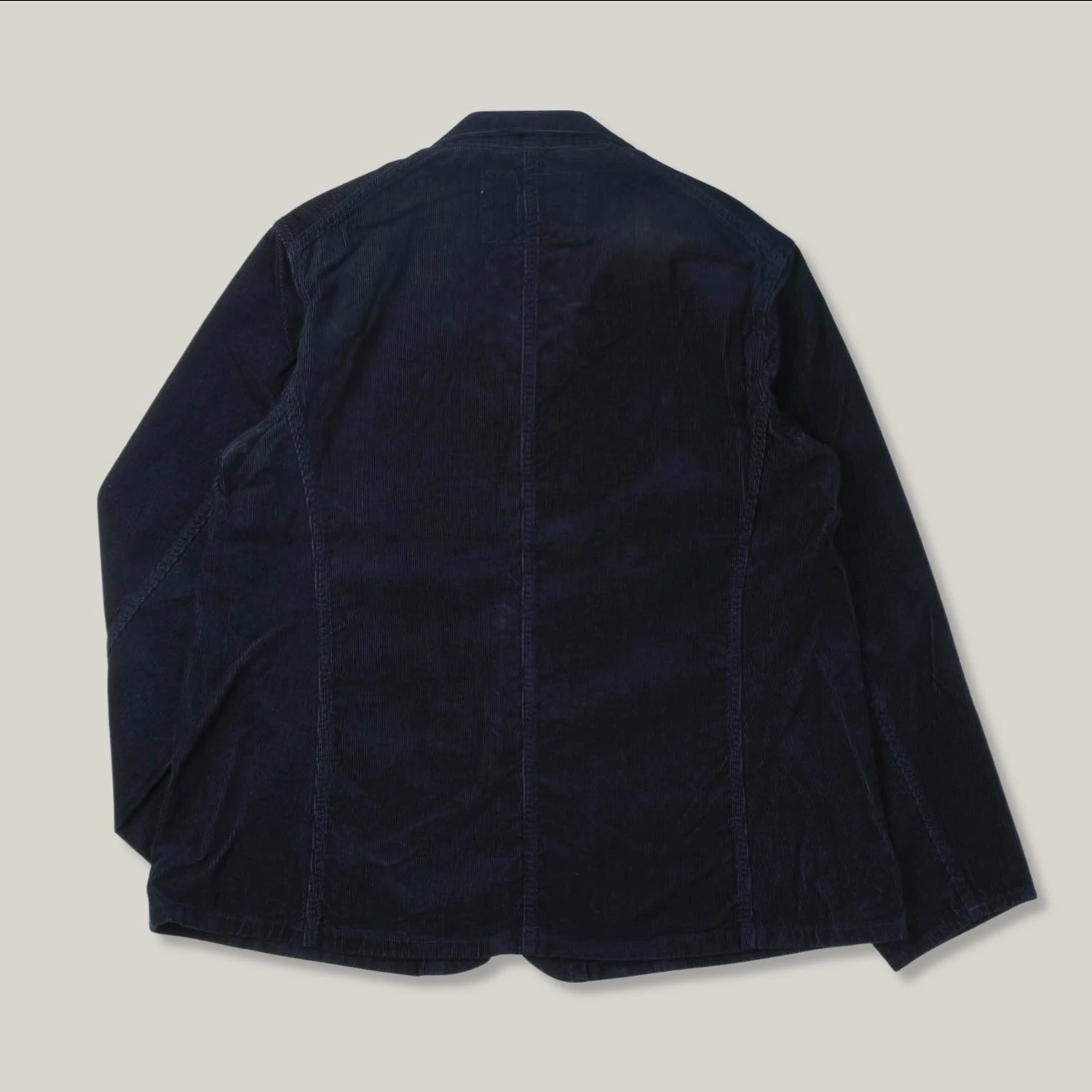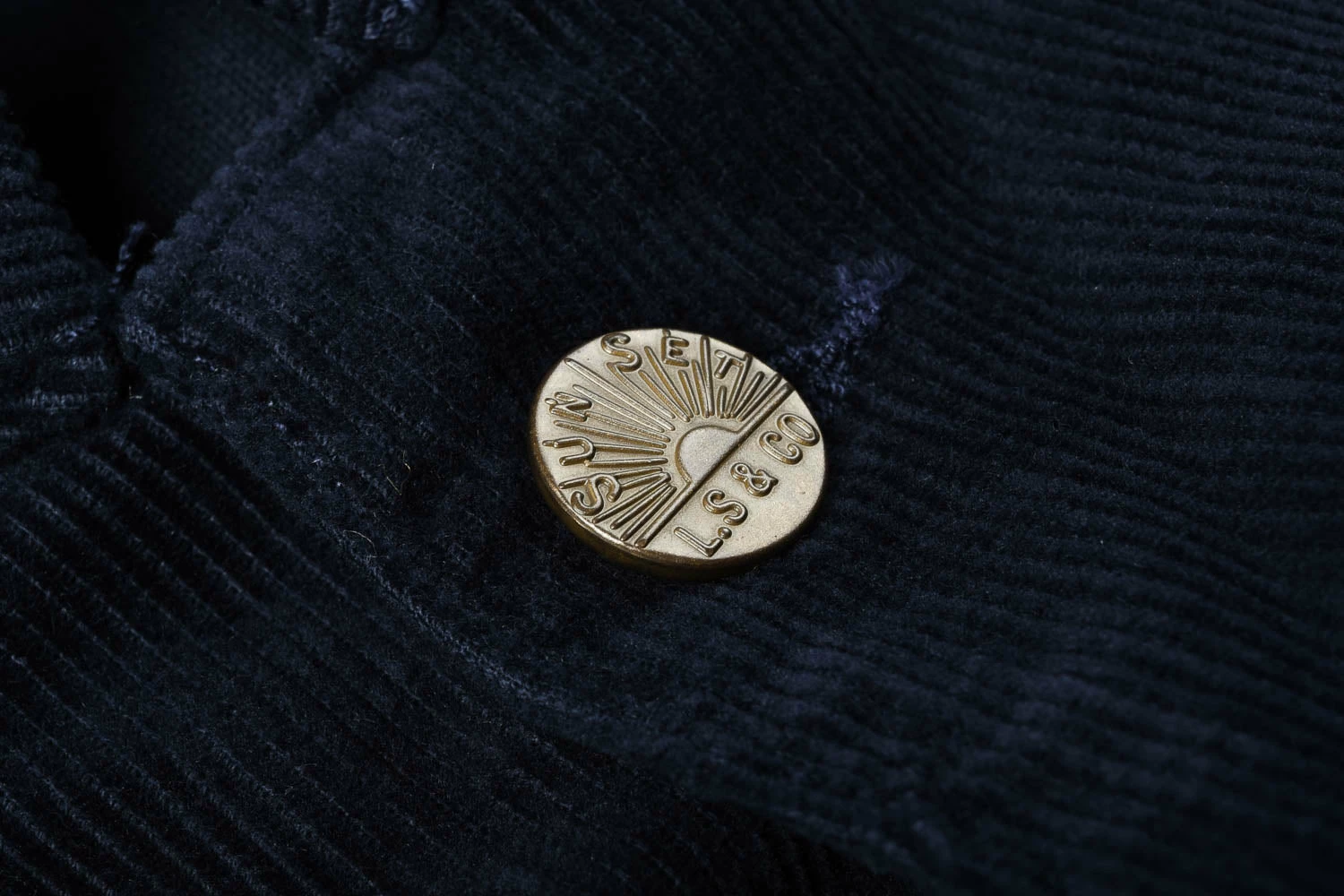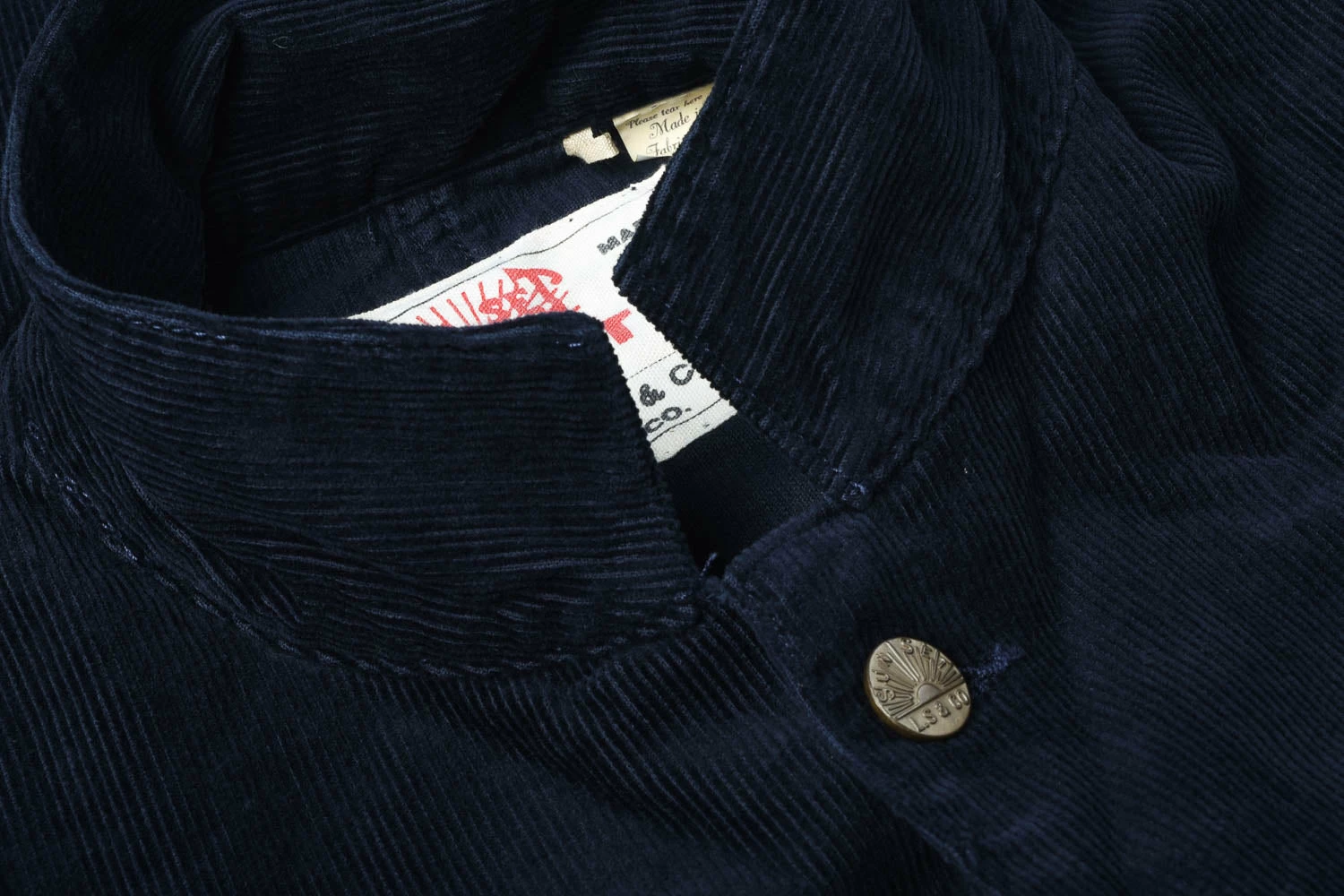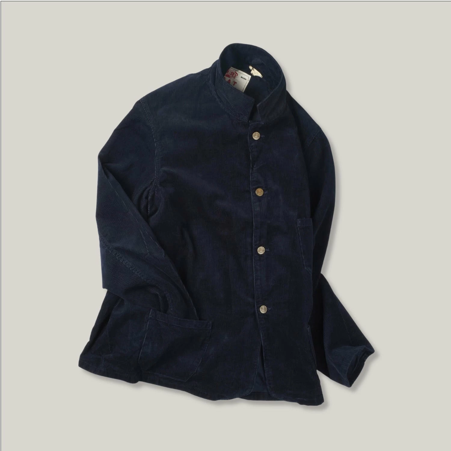 Based on a 1920’s coat, this unstructured jacket has been made in soft dark blue 14 wale corduroy, highlighted with premium metal sunset buttons. Details three button main fastening with an extra on the lapel for colder days, also three patch pockets. Pair with the matching trousers for a suit.
