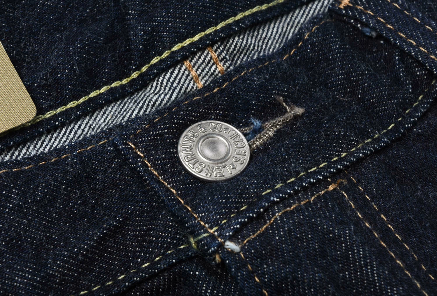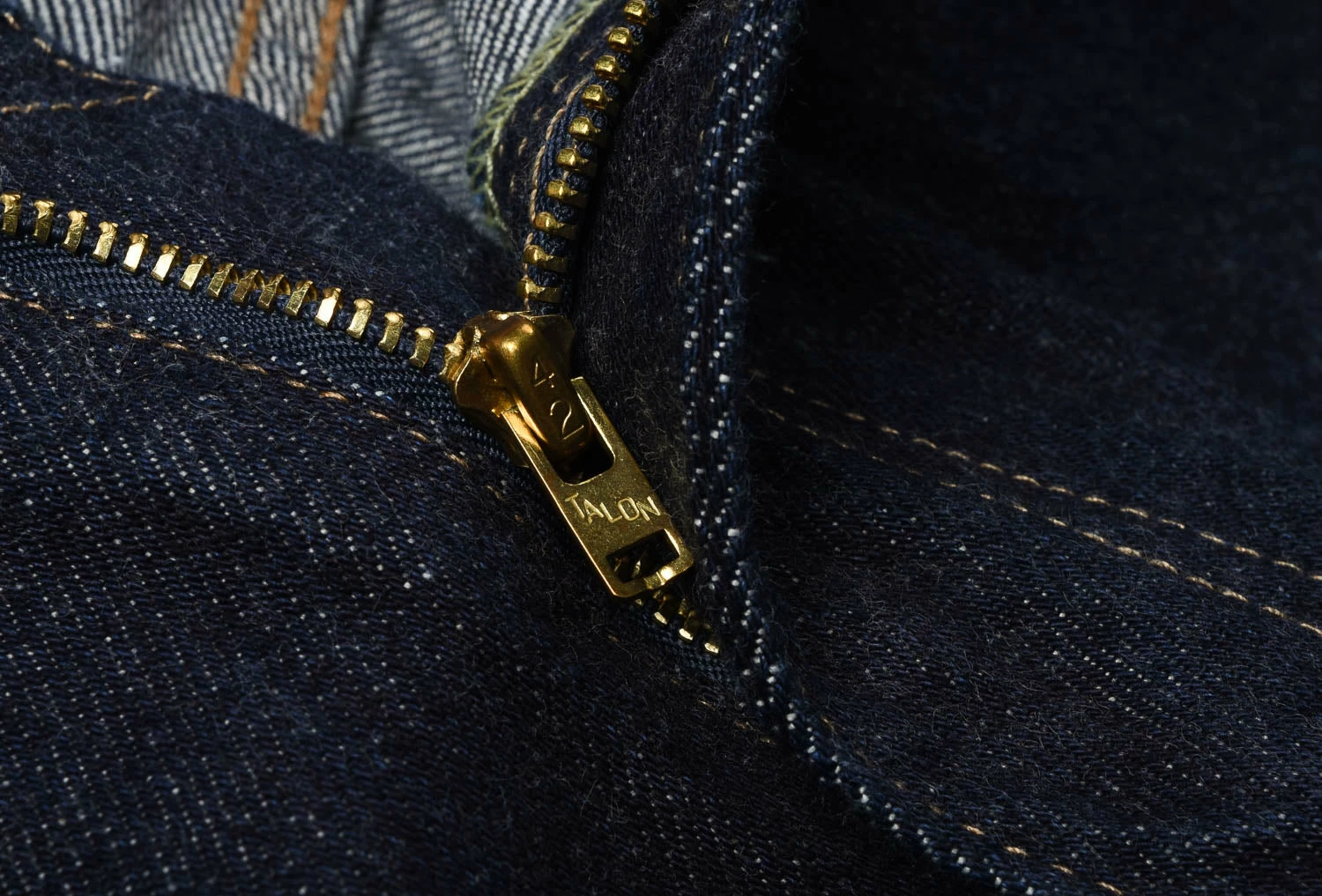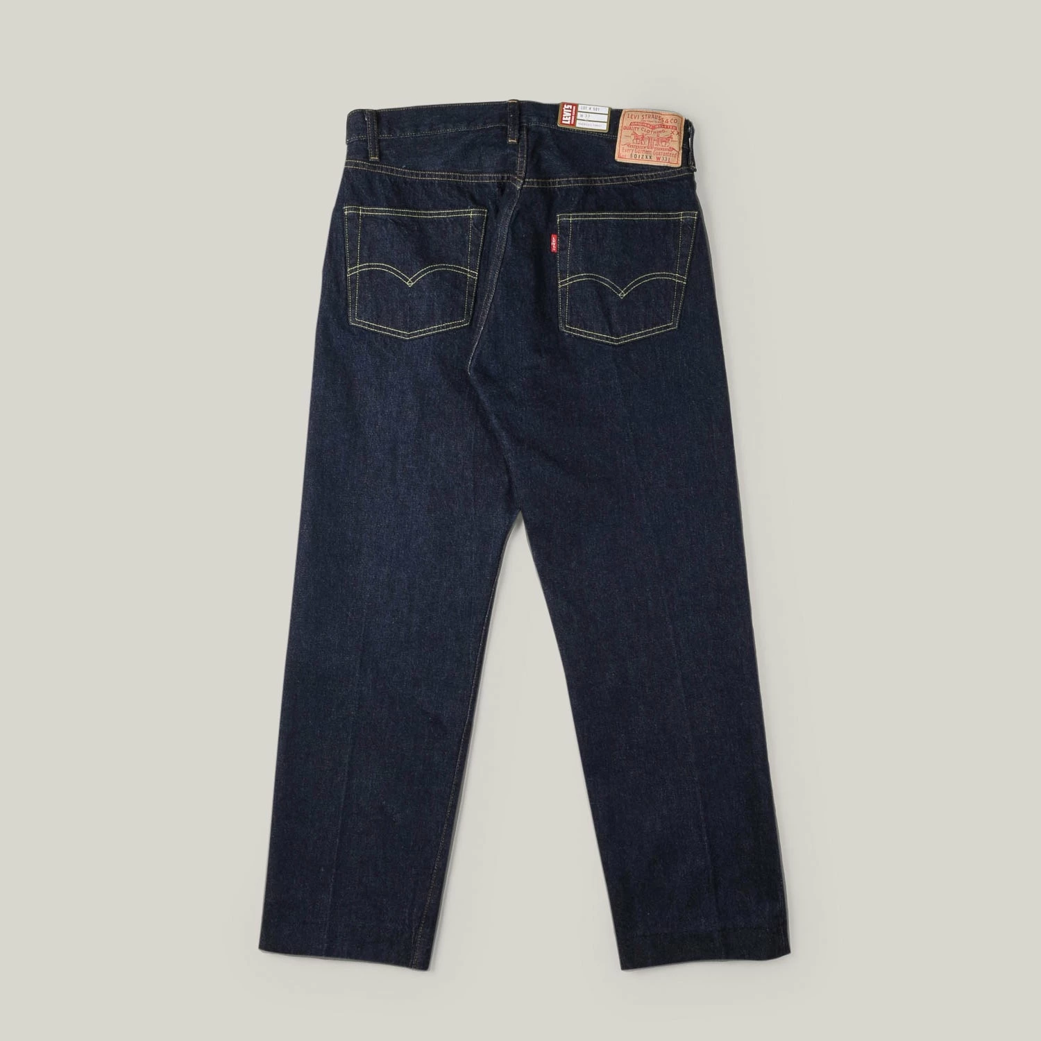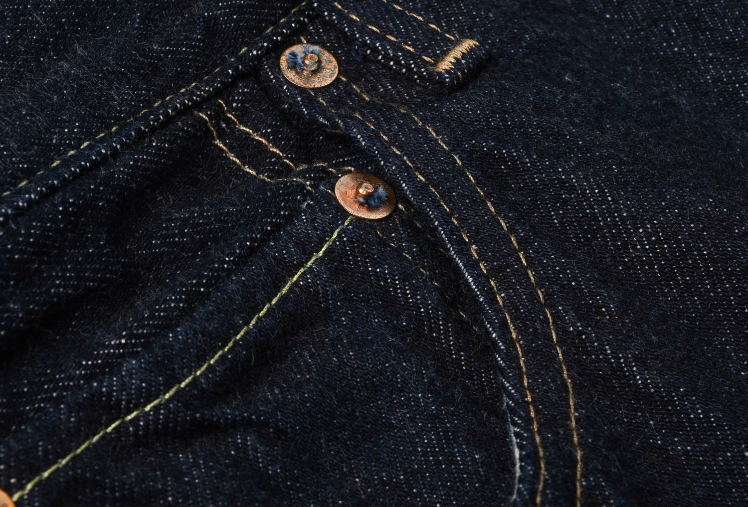 Straight fit, mid rise, 5 pocket jeans, made in a dark indigo denim. The fit is straight leg with a zip fly for those who prefer it and the main difference being they have a pressed flat bottom hem to create the silhouette of a denim trouser, intending the wearer to iron with a crease to further enhance the look. The familiar arcuate on back pockets and gold & tobacco stitching still remain, with darker hardware to match the dark denim.