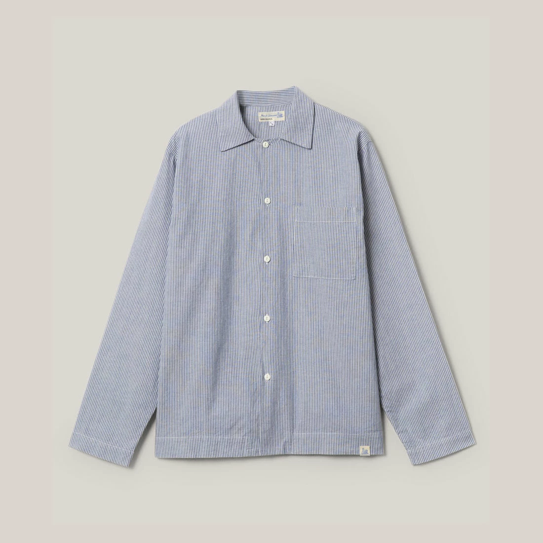 Unisex relaxed pyjama shirt, made in organic cotton with patched pocket and corozo buttons. Soft, breathable and like everything from Merz, these will wash incredibly well, time and time again. Part-collar so as not to garrote or irritate you overnight Pair with the matching bottoms if preferred for the full set.