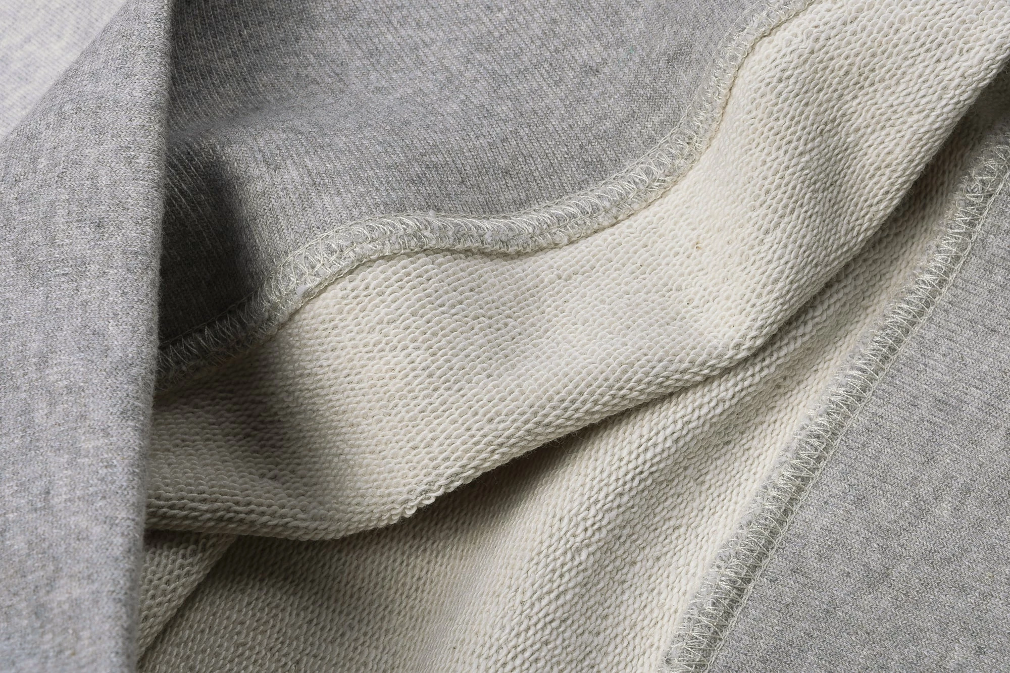 - 3-thread, 340 gr. (12 oz.), Made on loop wheel machine