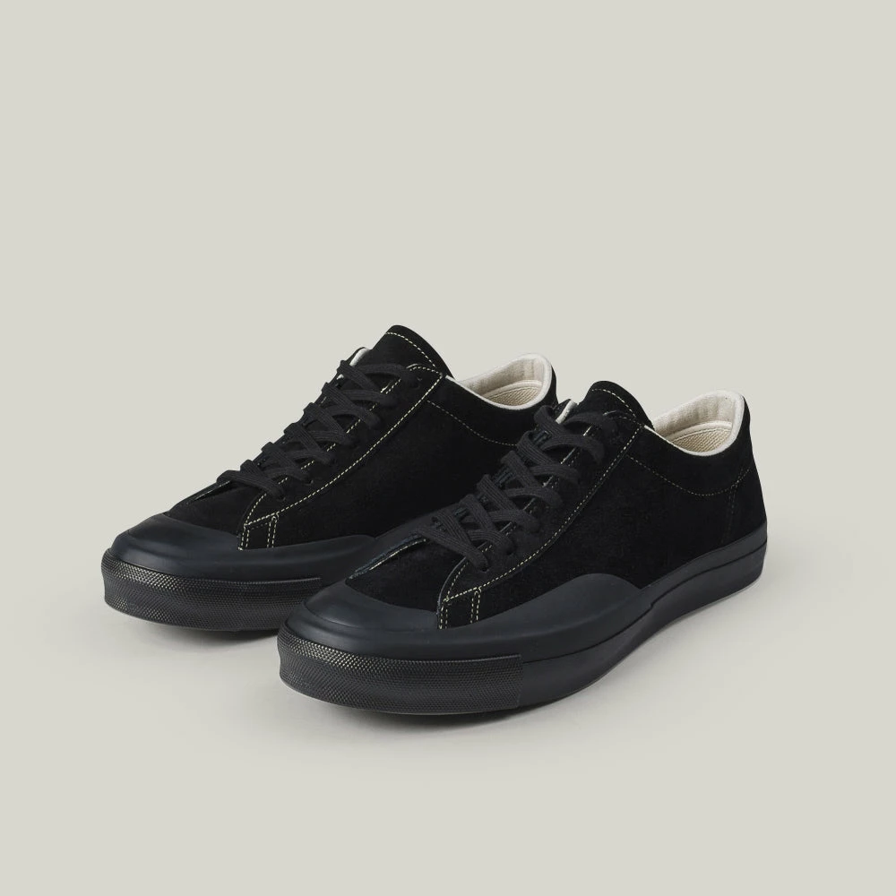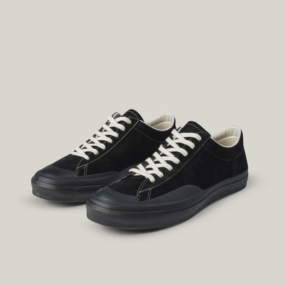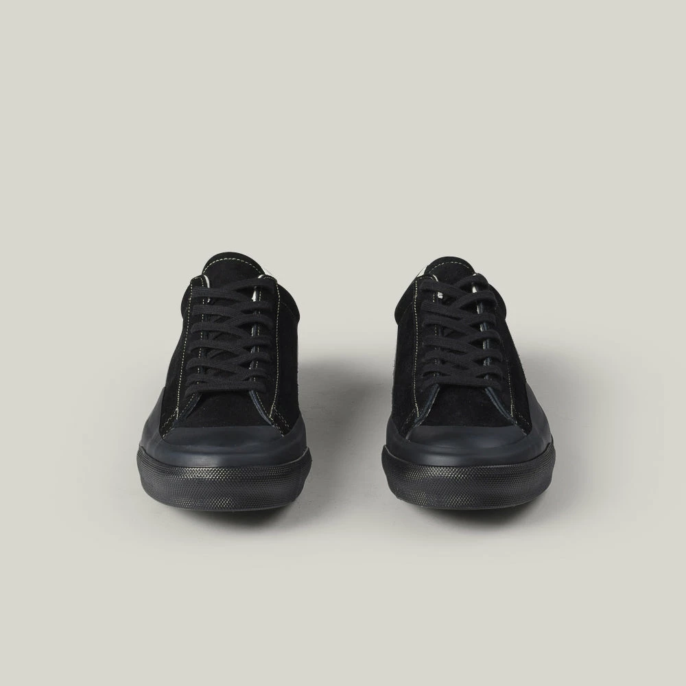 The Bumper Court is a sleek court shoe in soft black suede, with contrasting white stitching and large rubber ‘bumper’ on the outside of each shoe. Some might say the perfect skate shoe…
