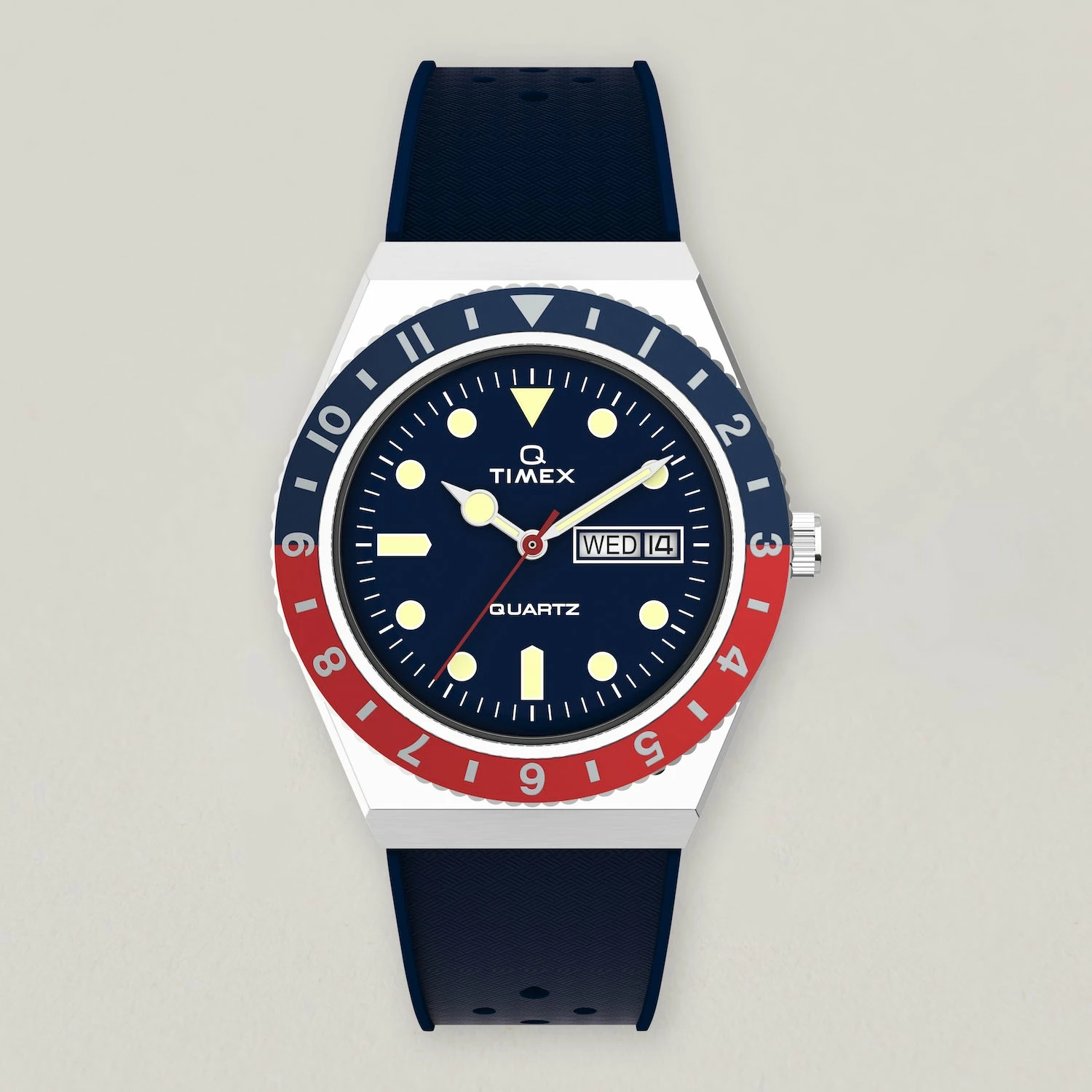 First released in 1979, the original diver-inspired Q Timex gave a new generation a modern Timex® watch with quartz technology. A true reissue, we recreated every detail— Now with a bold, fresh, and durable blue synthetic rubber strap that perfectly coordinate with each dial. It’s everything you already loved, and then some