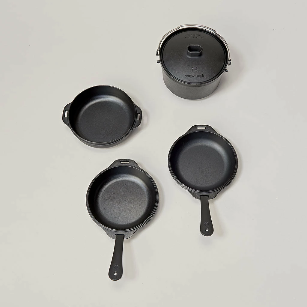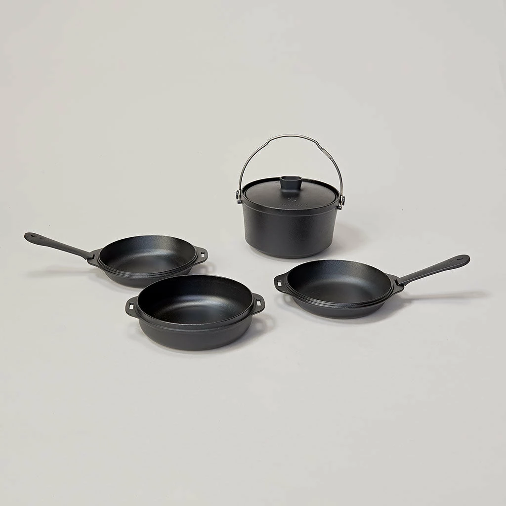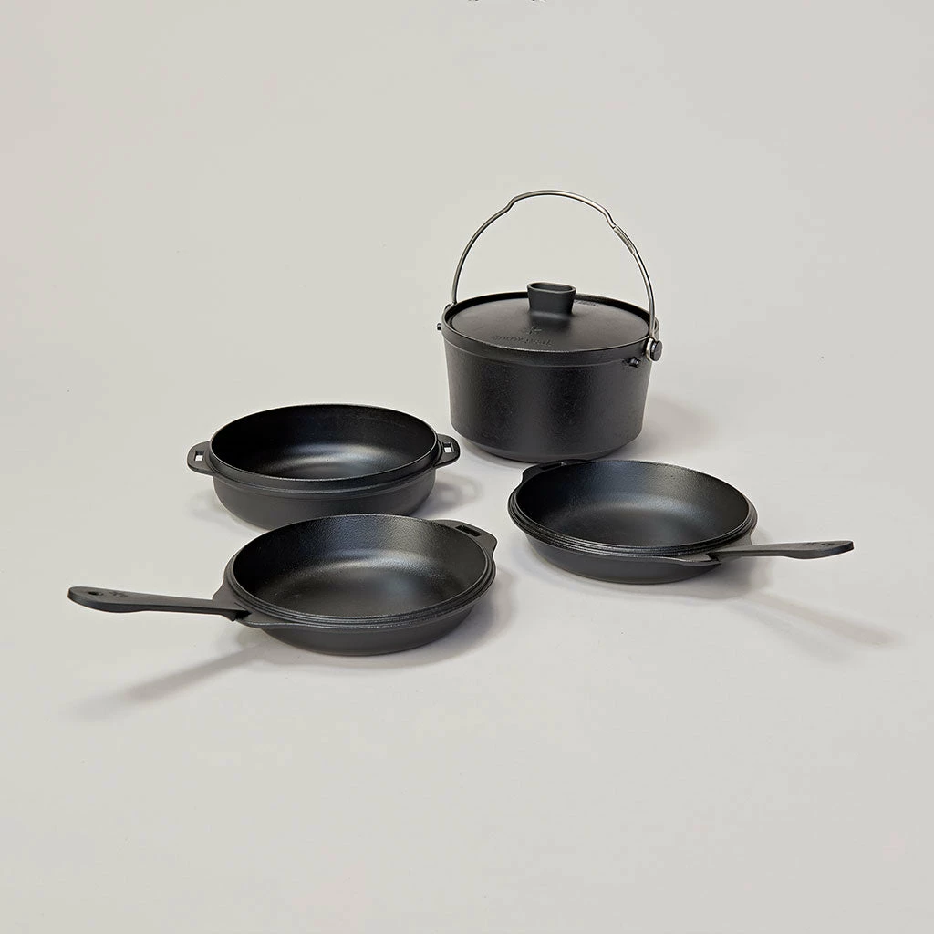A versatile, all-in-one, stackable cast iron cookset. Made with thin casting technology for savings in both weight and cook time.
