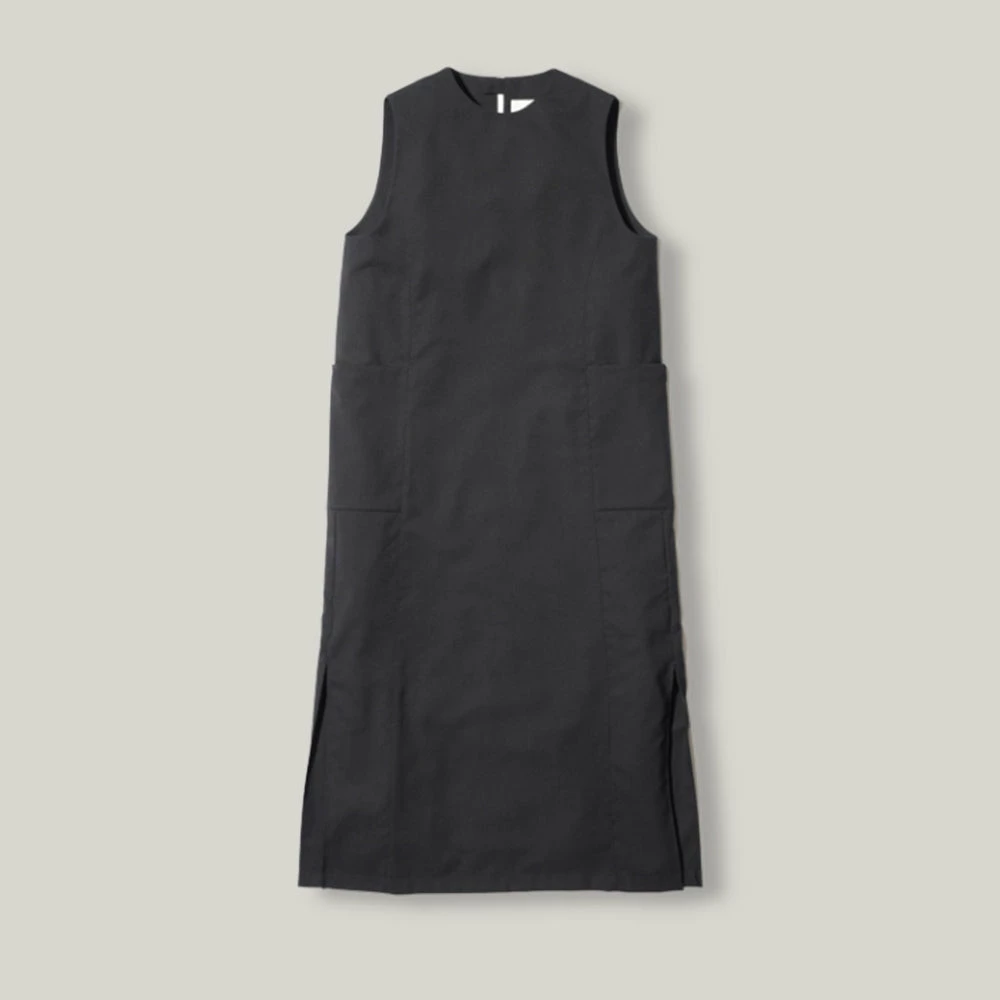 This stunning dress from Snow Peak is both minimal and chic at the same time, made from a hybrid wool fabric that works extremely well and elevates the piece to a whole new level. The fit is relaxed yet fits to the contours of the body, details include single press stud fastening at nape, curved side seams that incorporate two large side pockets, you’ll never to carry a bag again.