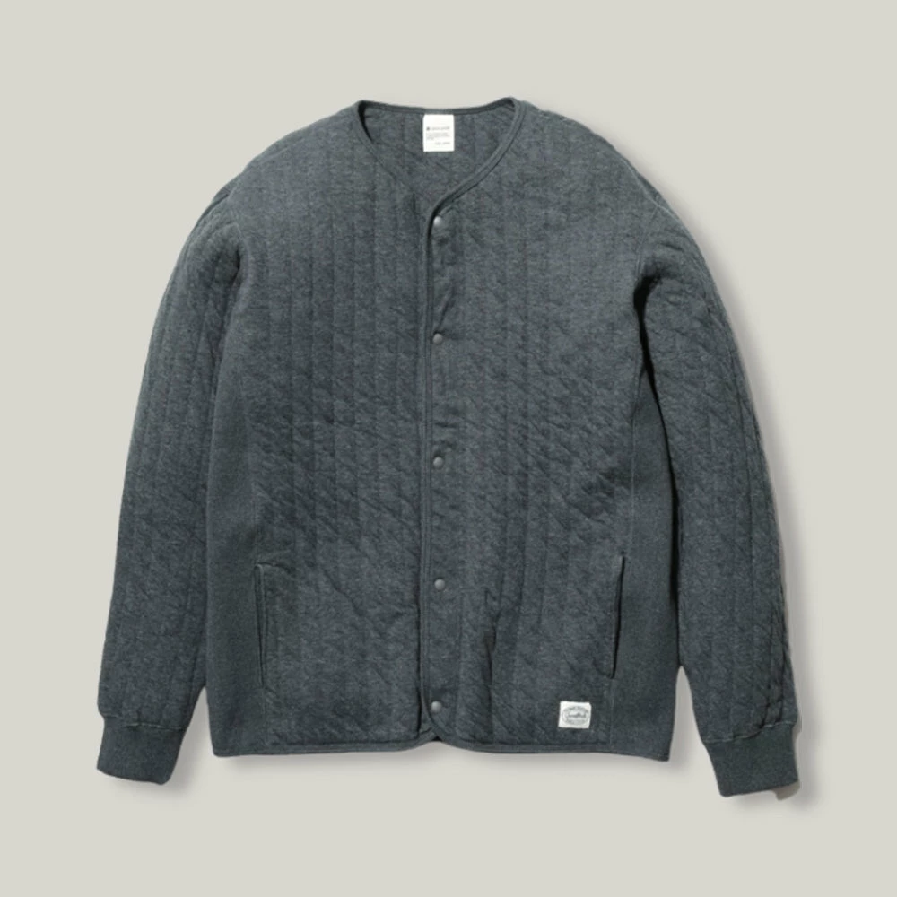 A cosy snap button cardigan that serves as a single warm layer during warmer climes and as an insulation piece between other garments during times when the mercury drops. The piece is intended to be loose on the body, with two side pockets and ribbed fabric used throughout. It has a natural flex to it that moves with your body.
