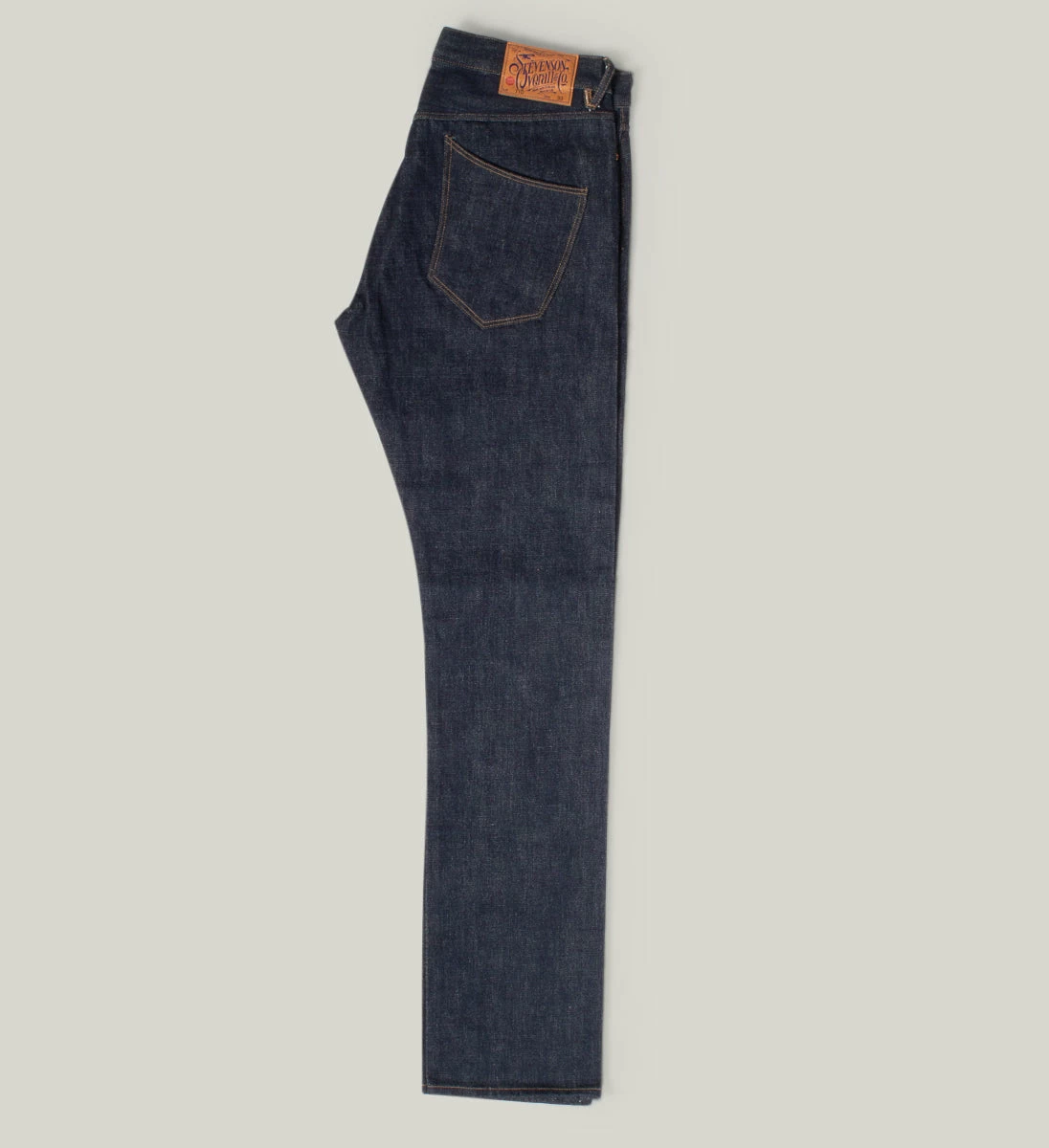 The Monterey shape is a slim tapered jean, – though not too slim – and the block is taken from a pair of Stevenson Overalls 727 jeans that designer Atsu has owned for several years. Over time the shape of them had naturally stretched and hence it is a slightly more relaxed version of that model. Details include arced pockets, v-shaped belt loops and curved front pockets.