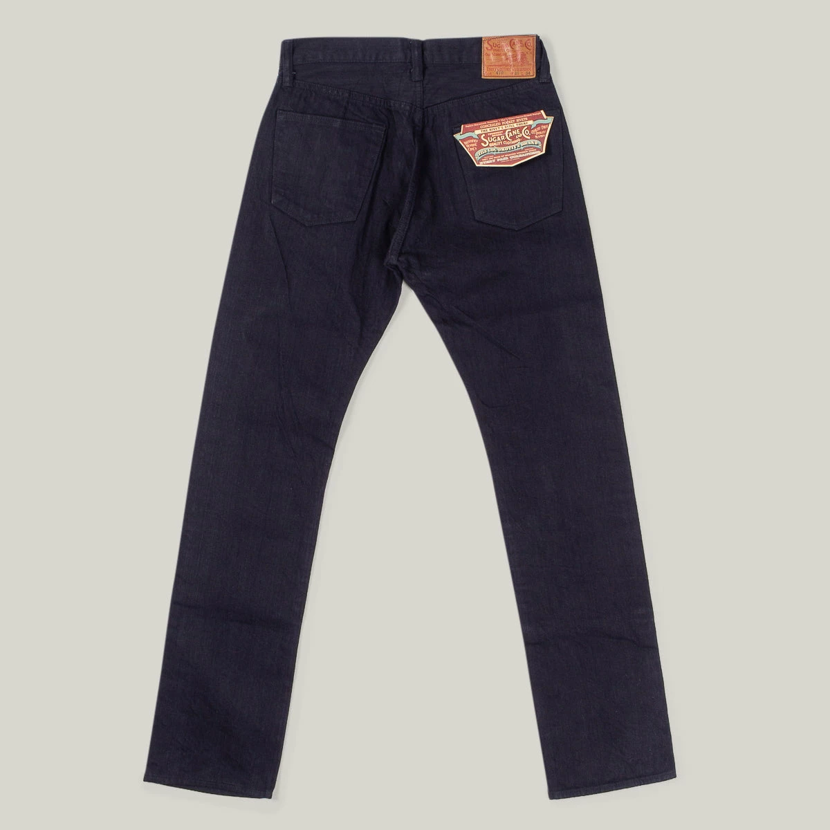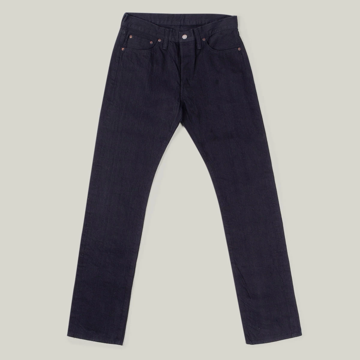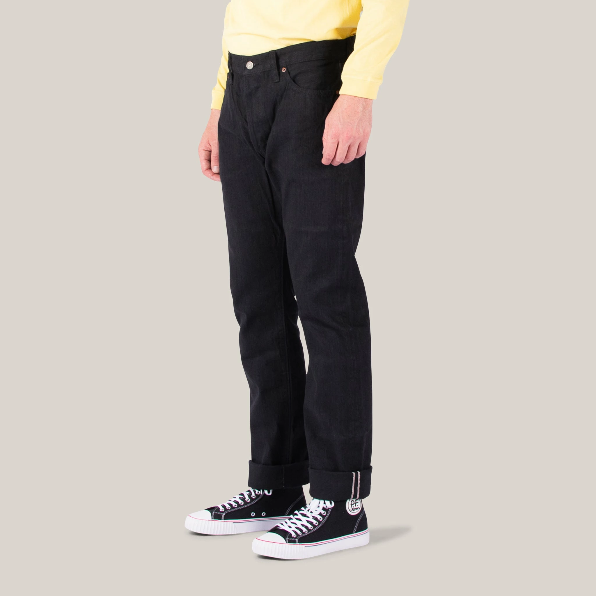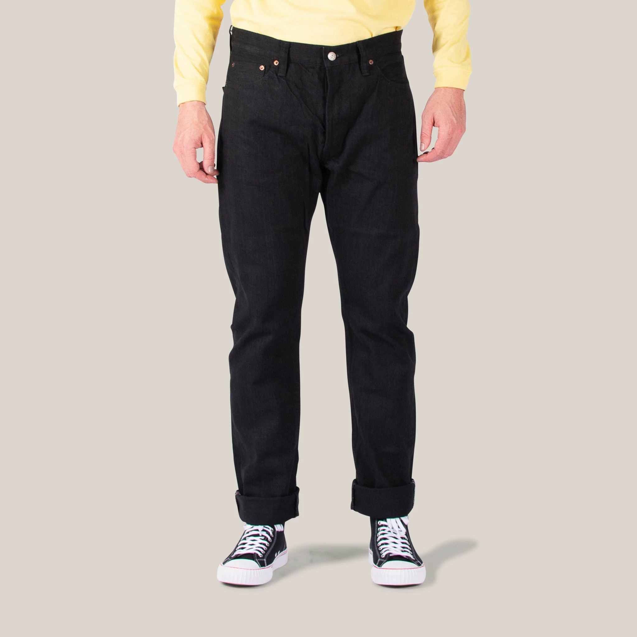 The slim fit black Type III jean from Sugar Cane is constructed from a denim woven with two different black yarns. The fit is tapered and slim but certainly not skinny.