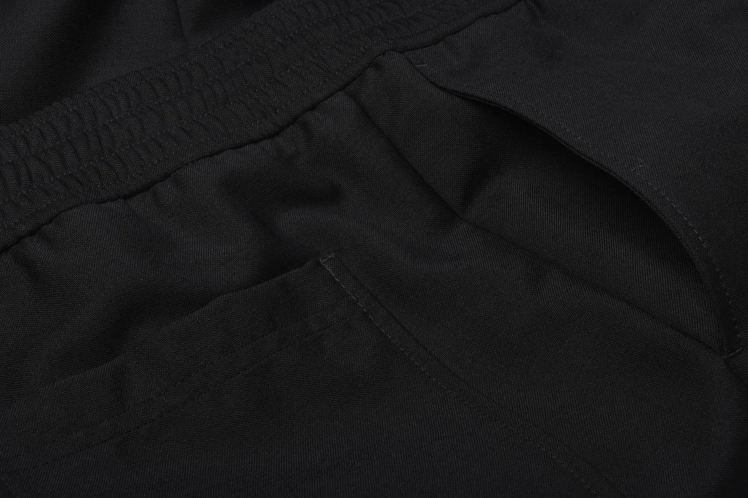 A chic hybrid trouser that has the feel of a track pant but the drape and fabric of a formal trouser. Constructed in a fine wool/ mohair blend, details are minimal with a faux fly, single back patch pocket, elasticated waist with elastic drawstring and side pockets. The fit is tapered and can be worn formally or casually.
