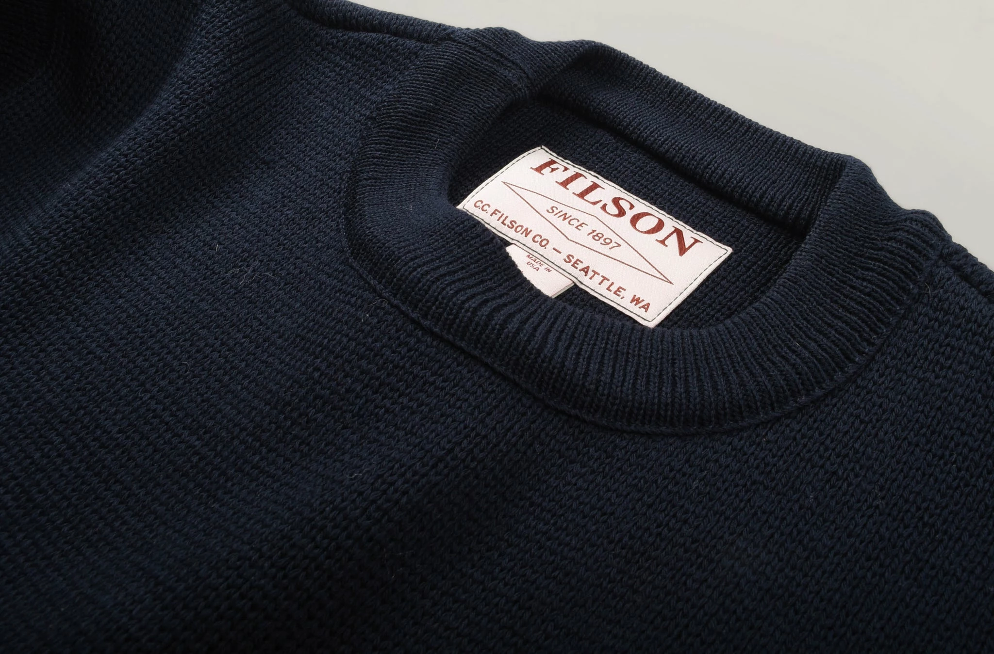 An excellent piece of knitwear we used to sell many moons ago, made in America using thick gauge wool that is breathable and water repellent, a knit of huge warmth capacity. Note: this is a Filson large so more like an XL.