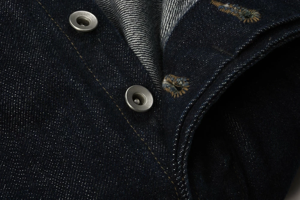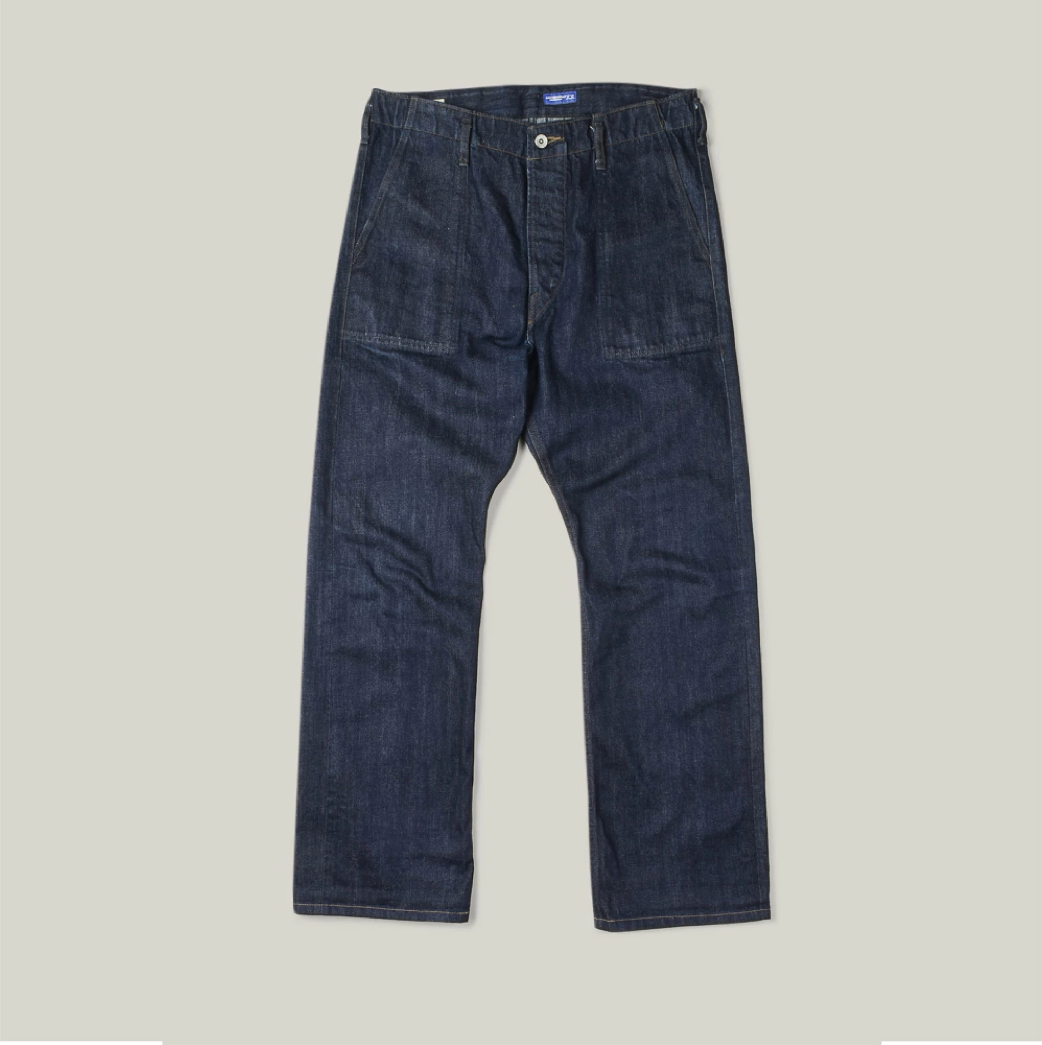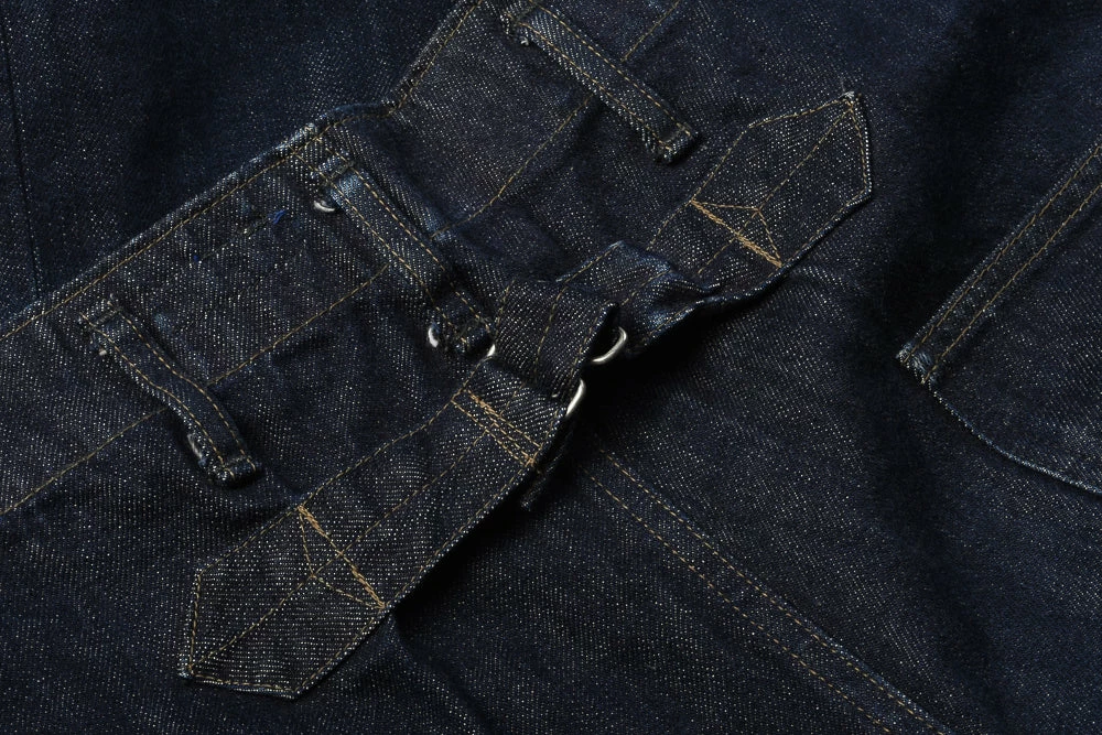Part of their semi-permanent collection are these hybrid trouser/jeans from Margaret Howell and Canton Overalls in Japan. A true straight cut with cinch back detail, stitch through slant pockets, khaki cotton stitching and white selvedge inseam. Note; these are a large medium, see size guide.