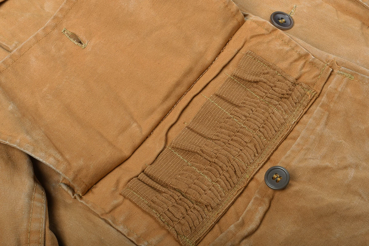 An original one of these is a wondrous thing, often copied and adapted for many reasons. This version is a lovely simple one but still full of enough detail to scintillate, the corduroy collar and shoulder panel, the back game pocket, angled hand warmer packets that attach to the larger front pockets below and these still have the original shotgun casing webbing intact, perfect for a load of Push-Pops. The patina on this is incredible all over and it has a nylon half lining and down the sleeve for water repelling capabilities.