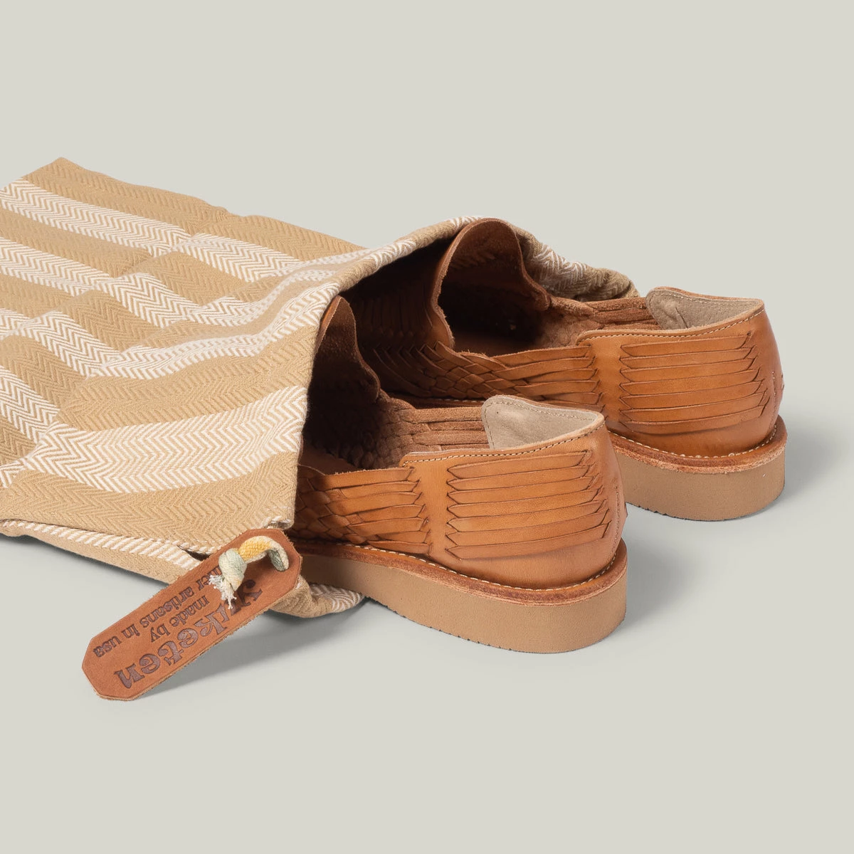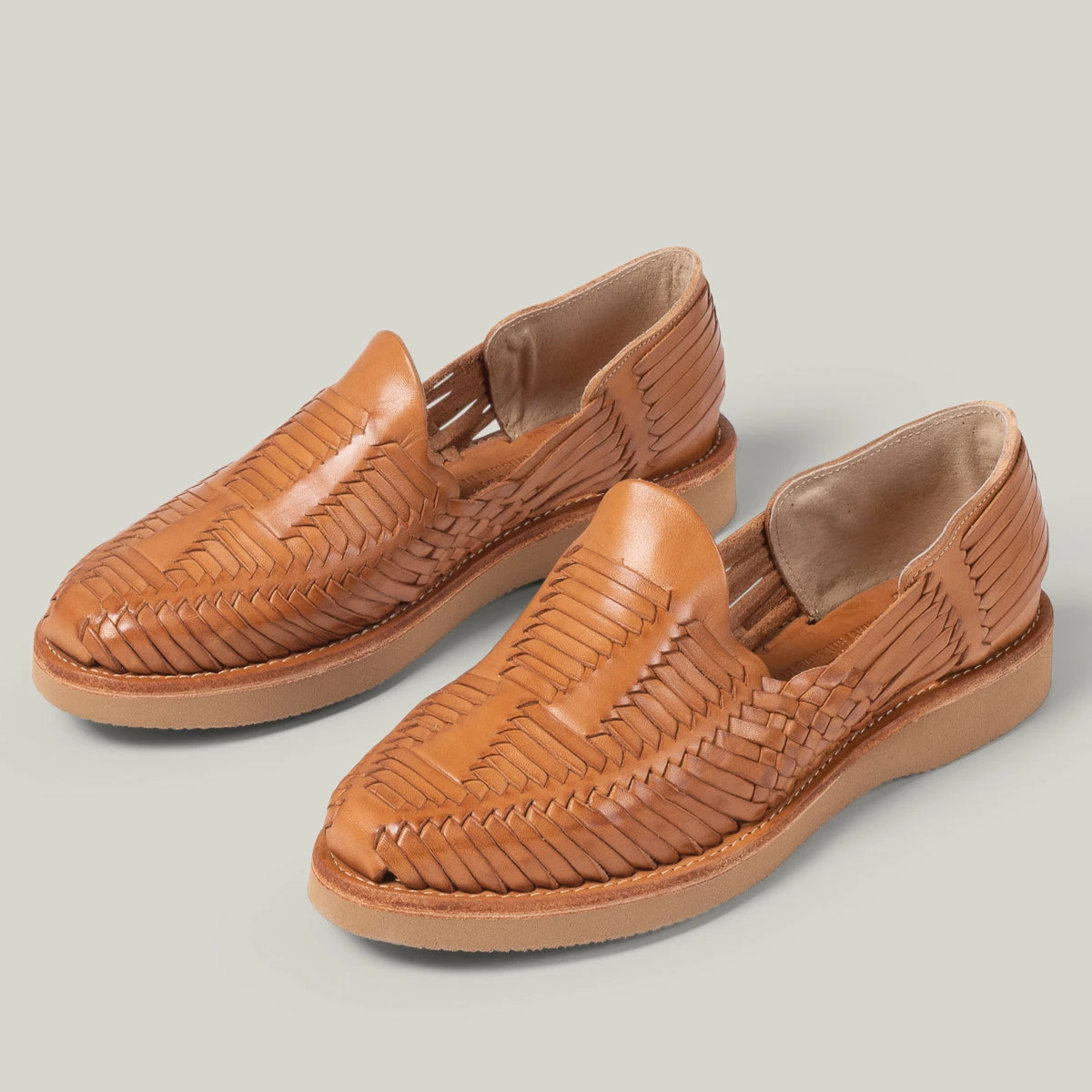Yuketen’s Alejandro design is a classic slip-on design inspired by a primitive Mexican huarache style. Each pair of Yuketen huaraches is handcrafted in Mexico by highly skilled indigenous artisans using traditional huarache construction techniques. Each of the upper leathers are hand-dyed, and entirely hand-cut and hand-woven using Yuketen’s original vegetable-tanned leather, which will give it a lovely patina in time. You can always speed up this process with a little boot oil and sunshine!